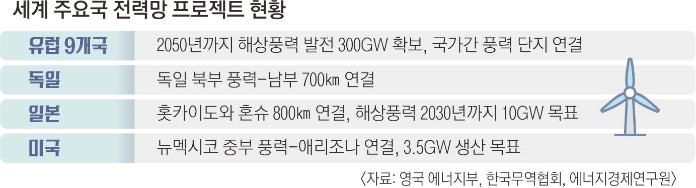 미국 역시 2024년 첫 삽을 뜬 ‘선지아’ 프로젝트를 통해 뉴멕시코주 중부의 풍력발전 단지에서 애리조나주까지 에너지 고속도로를 구축하고 있다. 약 300만 가구에 에너지를 공급하는 게 목표다. 유승훈 서울과기대 미래에너지융합학과 교수는 “중국, 미국 등도 전력망을 늘리는 등 각국이 안정적인 전력 공급을 위해 노력하고 있다”며 “우리나라도 빠른 시일 내에 서해안 에너지 고속도로 등 전력 인프라를 구축해야 한다”고 말했다.