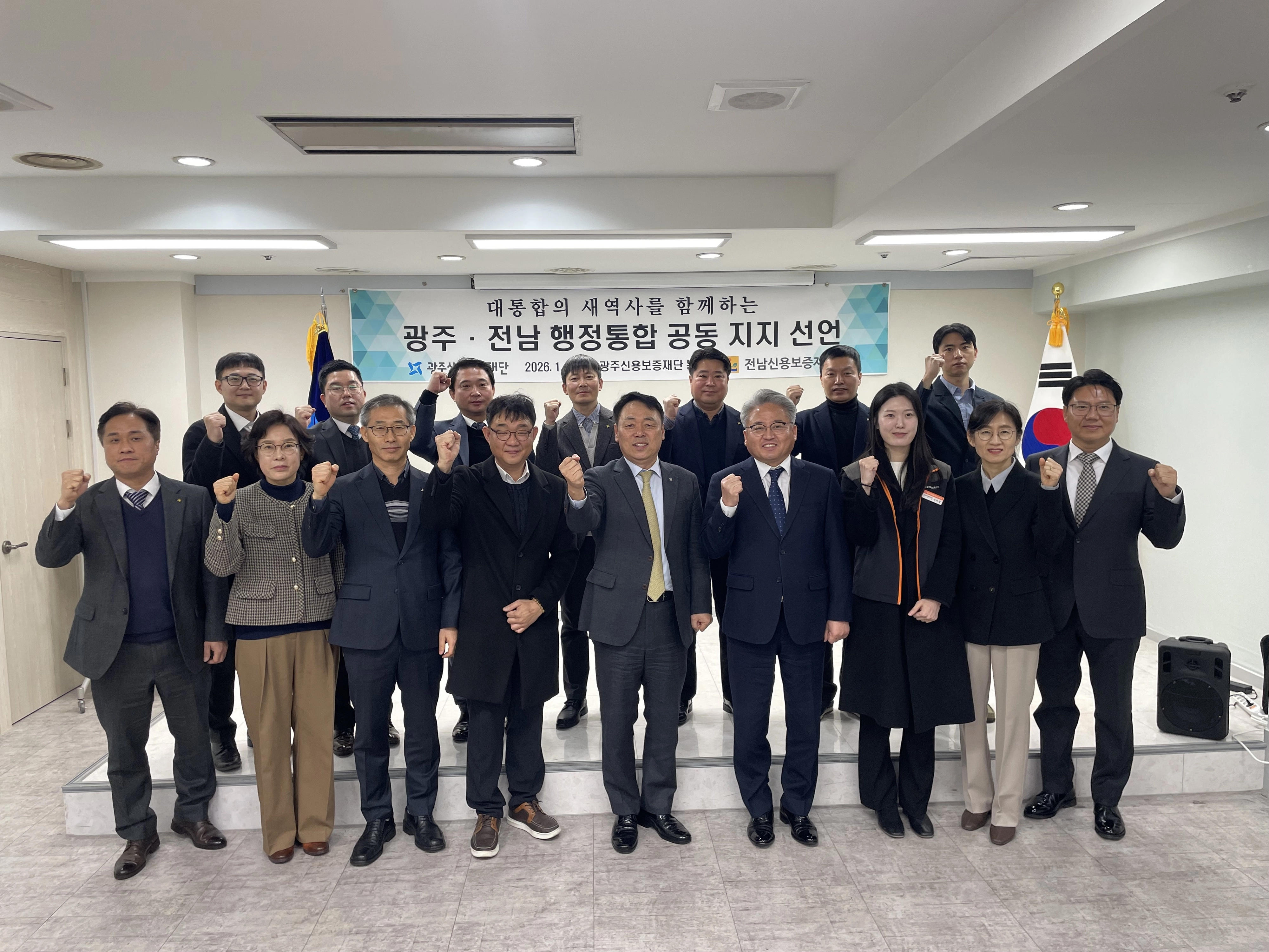 광주신용보증재단과 전남신용보증재단이 광주·전남 행정통합을 지지하는 공동선언을 발표했다.