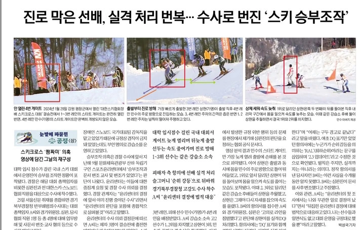 앞서 서울신문은 지난 2024년 1월 29일 고교 선수들의 대학 입시에 영향을 미치는 ‘대한스키협회장배 스키크로스 대회’ 결승전에서 승부조작 등의 정황이 포착돼 경찰이 수사에 착수했음을 단독 보도했다. 이어 스노보드 크로스에서는 국가대표 선정 과정이 석연치 않았음을 지적하는 한편, 2026 밀라노·코르티나담페초 동계올림픽 크로스컨트리 남자 대표 선발 과정에 제기된 불공정 논란 등을 다뤘다.