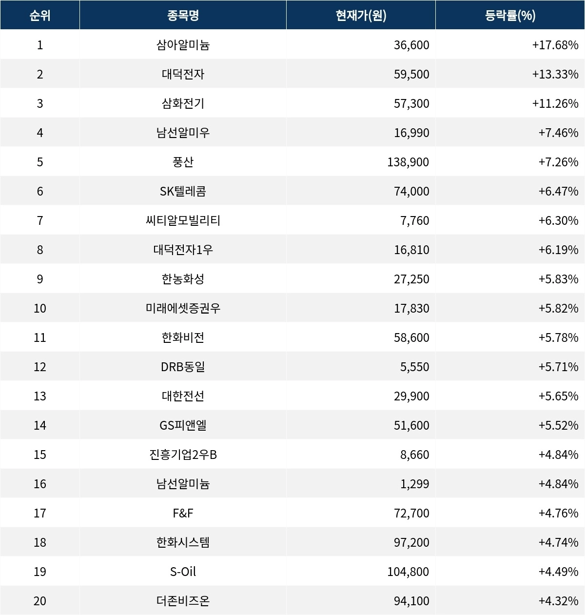 [서울데이터랩]‘삼아알미늄’ 17.68% 급등…실시간 상승률 1위
