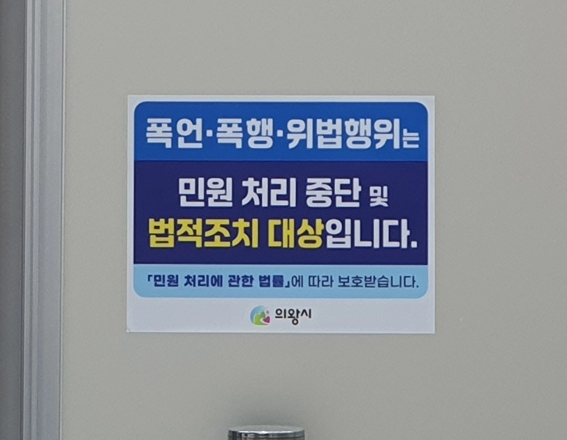 시는 위법 행위 발생 시 민원 처리 중단 및 기관 차원의 형사 조치가 가능함을 알리는 안내 스티커를 제작해 시청 민원실을 비롯한 전 부서에 배부·부착한다.