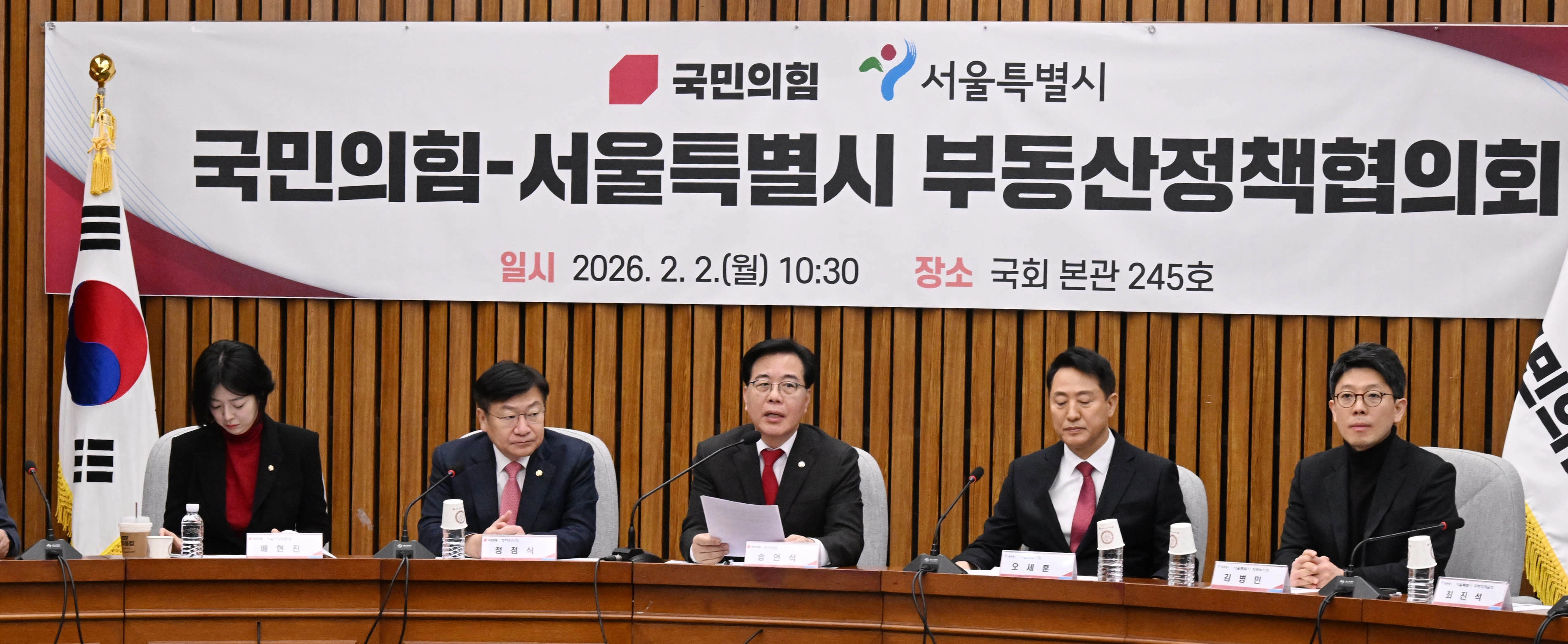 송언석 국민의힘 원내대표는 국회에서 열린 ‘국민의힘·서울시 부동산정책협의회’에서 “이재명 정권의 부동산정책 실패는 그야말로 역대급”이라며 “이 명백한 사실에도 불구하고 국민을 투기꾼 취급하면서 정당한 문제제기를 하는 야당을 ‘유치원생으로 조롱’하고 있다”고 지적했다.