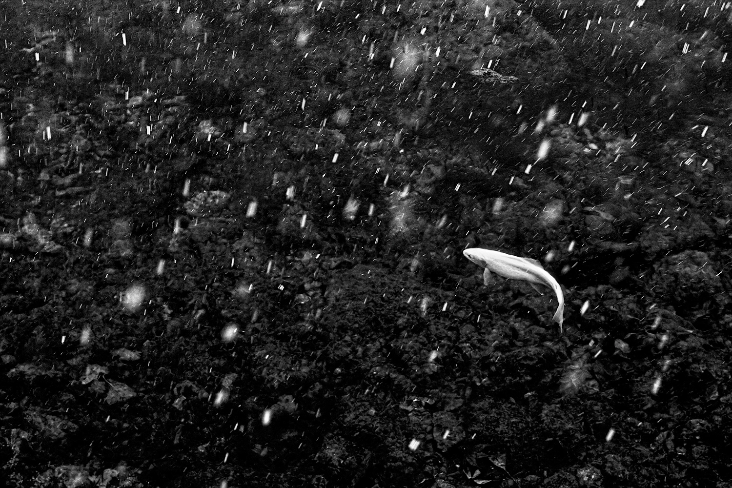 물고기 한 마리가 유영하고 있다. 바닥의 돌과 풀들이 얼비치는 수면 위로 한 점 한 점 떨어지는 눈송이들 사이에 비껴, 물속인지 하늘인지 변별하기 어렵다. 먼 길을 내려온 눈송이들은 이내 작은 물고기의 숨으로 들고 나다, 낙동강의 이름으로 흘러갈 것이다.
