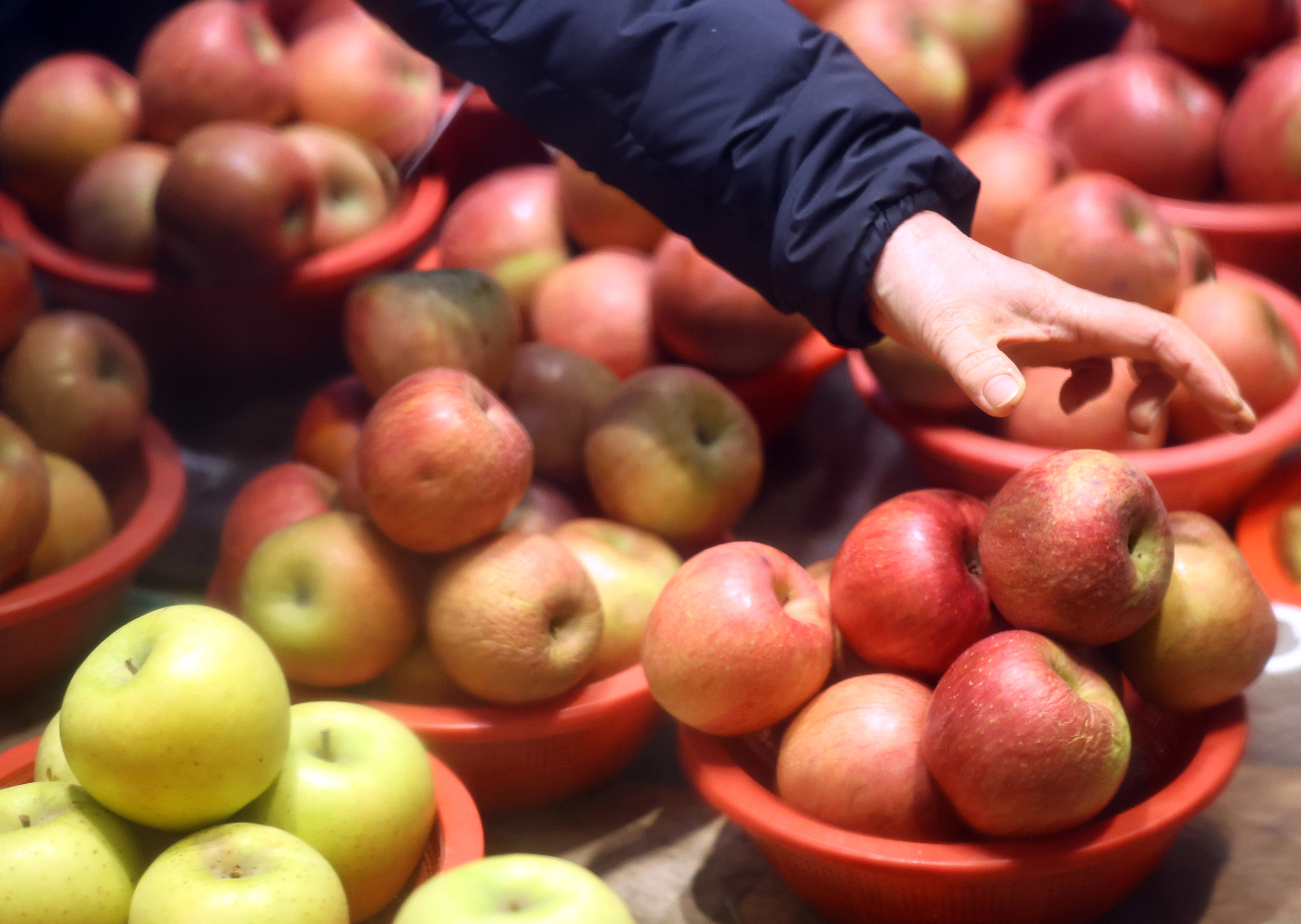 설 명절을 앞둔 25일 서울 청량리 농수산물시장에서 고객이 사과를 고르고 있다. 2026.1.25 뉴시스