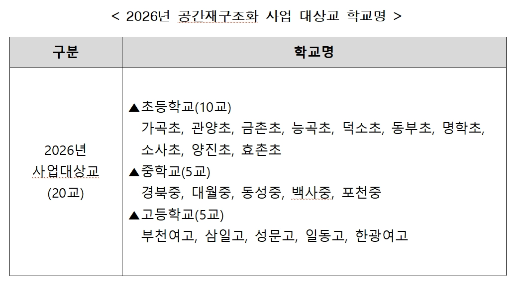 경기교육청, ‘2026 공간재구조화사업’ 대상 학교 20곳 선정