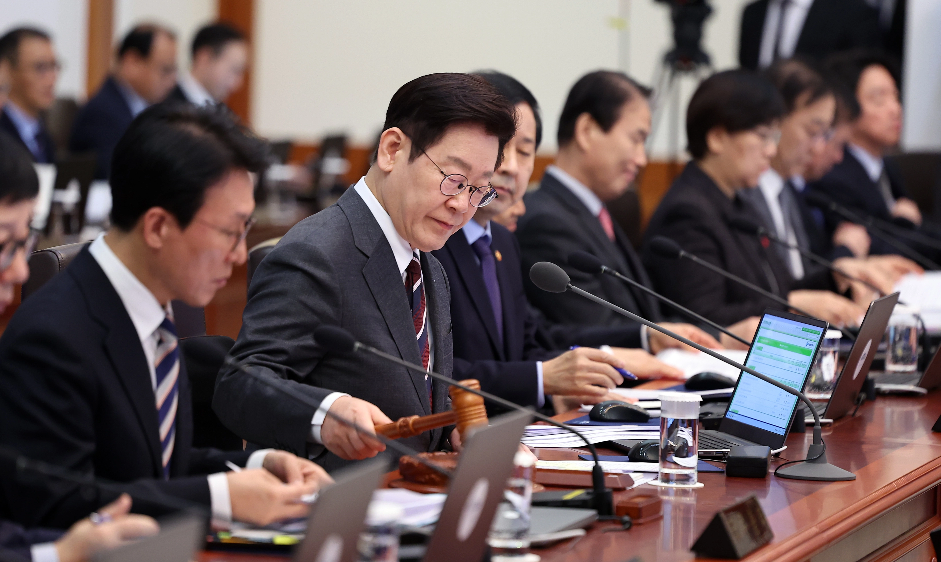 이재명 대통령이 3일 청와대에서 의사봉을 두드리며 국무회의 개회를 선언하고 있다. 연합뉴스