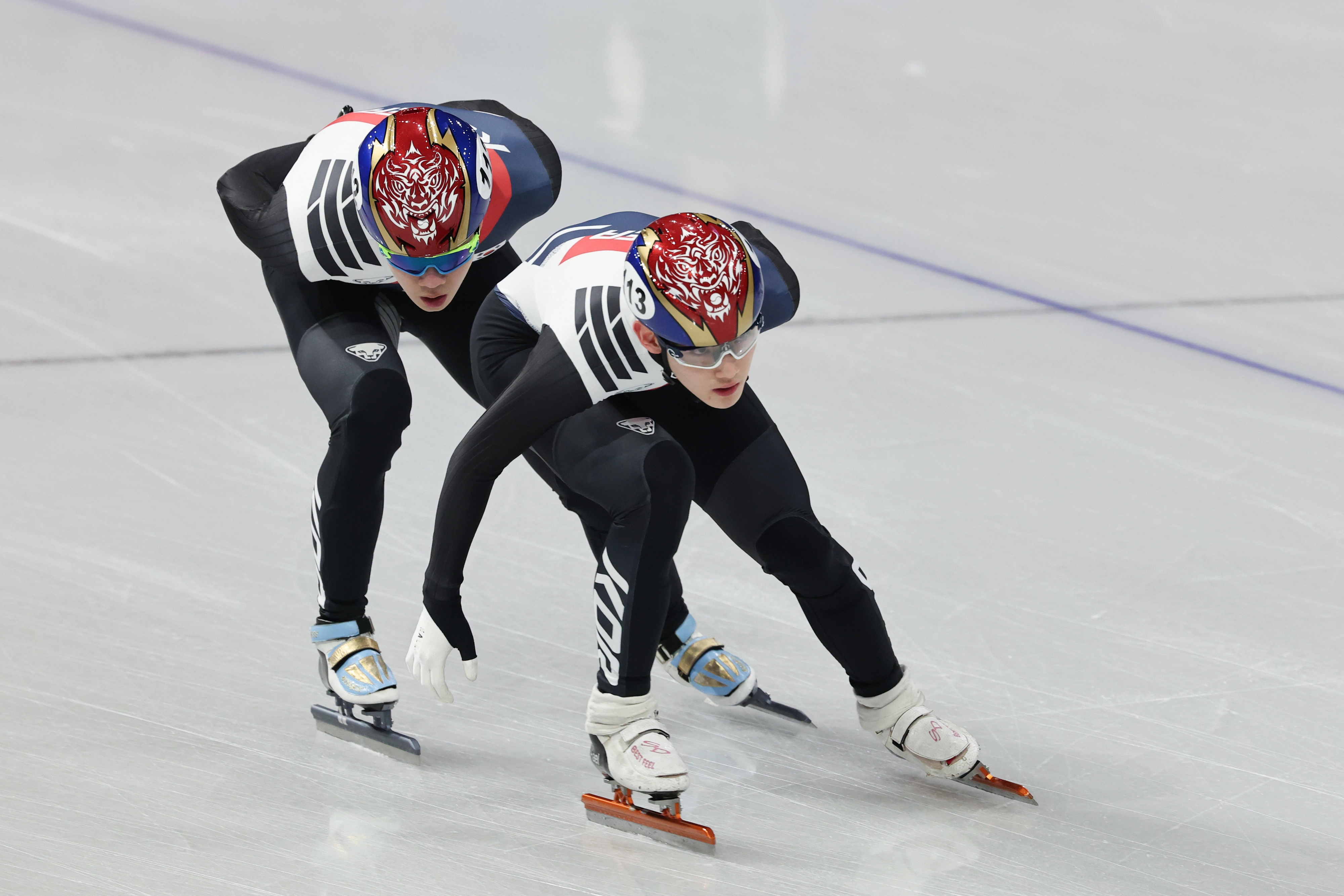2026 밀라노·코르티나담페초 동계올림픽 개막을 4일 앞둔 2일(현지시간) 이탈리아 밀라노 아이스스케이팅 아레나에서 쇼트트랙 임종언(앞)과 이준서가 훈련하고 있다. 2026.2.2 밀라노 연합뉴스