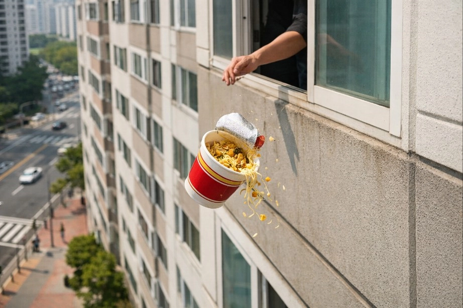 경북 안동시의 한 아파트에서 누군가 컵라면을 아래로 던져 지나가던 행인이 라면 국물을 뒤집어쓴 사실이 뒤늦게 알려졌다.