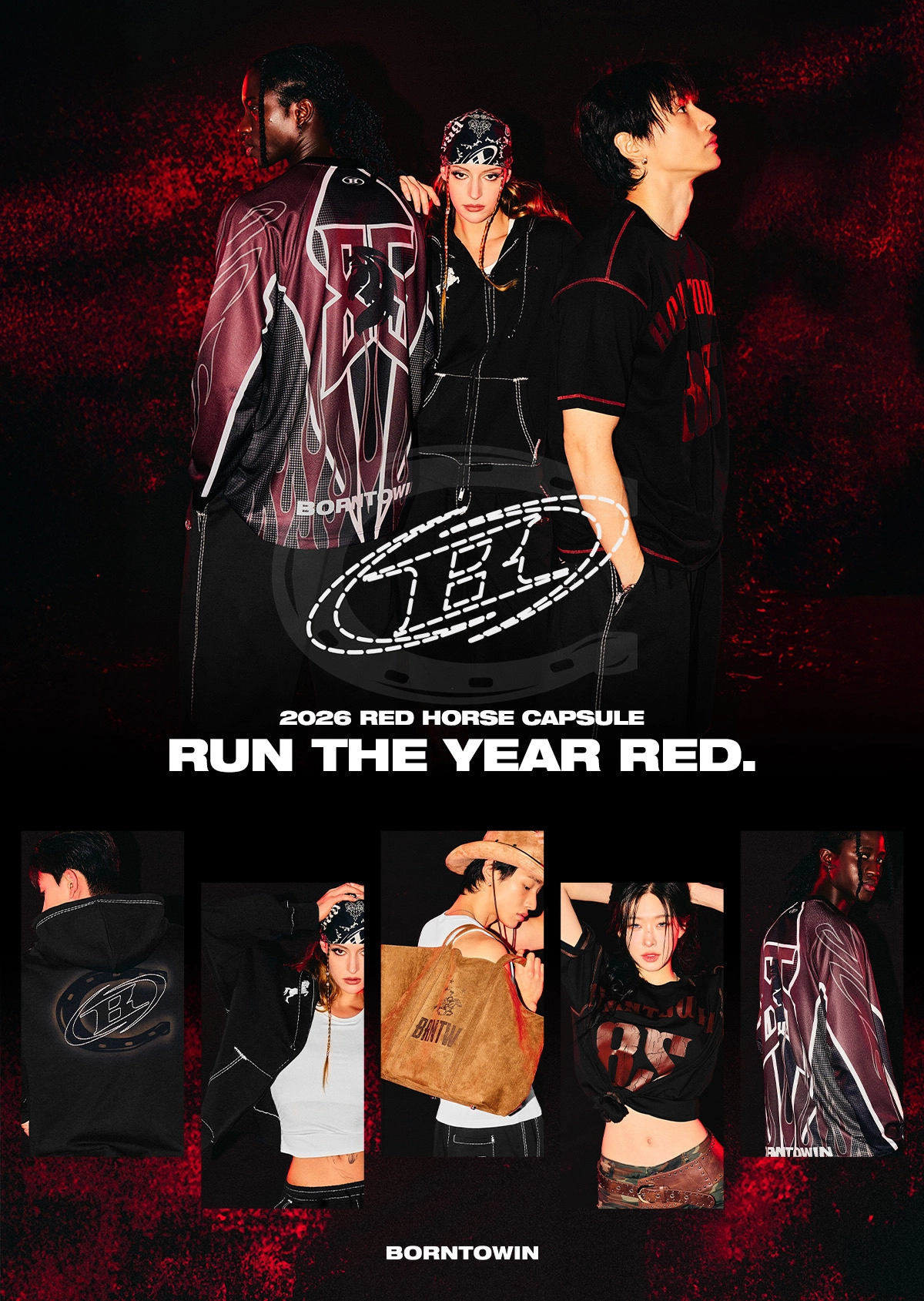 이번 캡슐 컬렉션은 2025 병오년(丙午年)을 맞아 붉은 말을 테마로 레트로와 웨스턴 무드를 본투윈만의 감성으로 재해석한 한정판 라인이다. 후드 집업, 반팔티, 레이싱 져지, 와이드 팬츠, 버뮤다 팬츠, 볼캡, 스웨이드 쇼퍼백 등 총 7종으로 구성됐다. 특히 시그니처 아이템인 ‘BOLD LINE SYMBOL B HOODIE ZIP-UP’은 발매 3일 만에 전 사이즈 품절을 기록했다.
