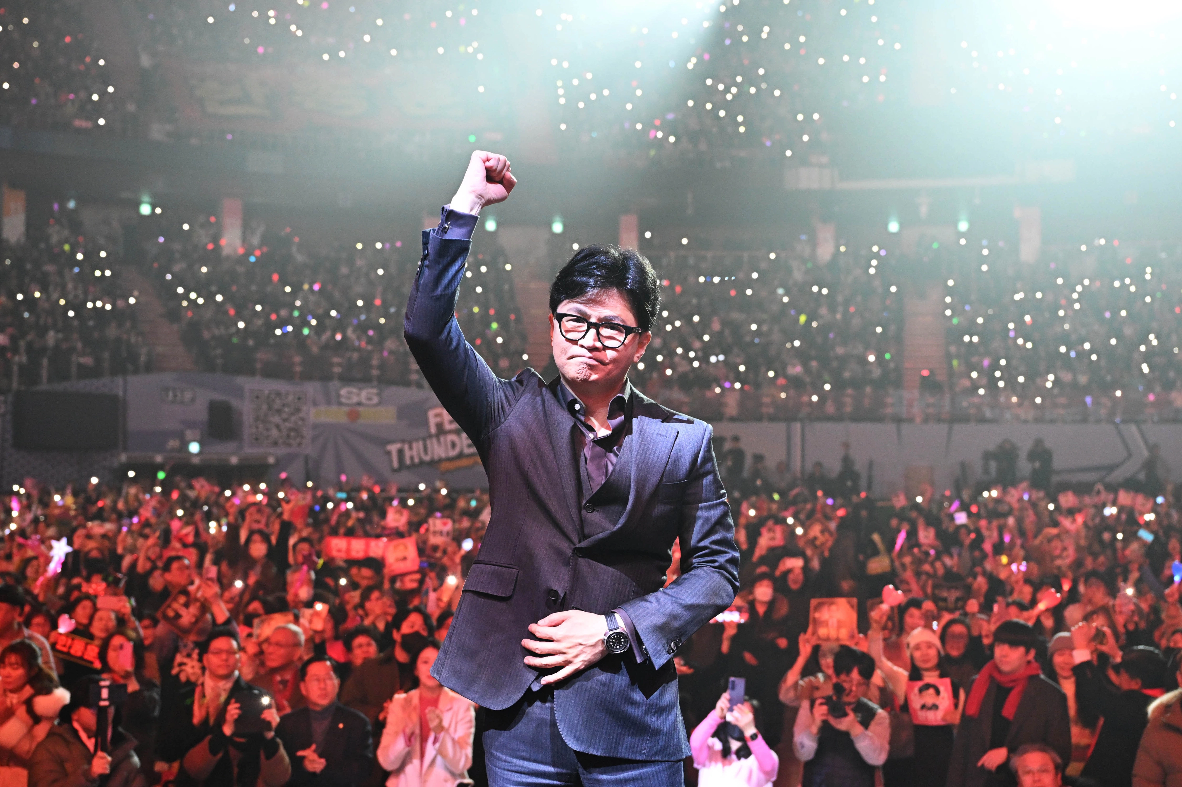 주먹 들어올리며 입장하는 한동훈 전 대표