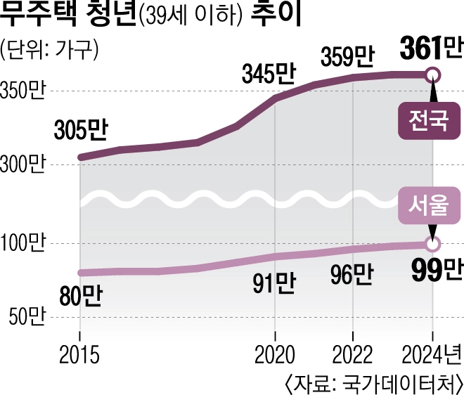 집 없는 서울 청년, 100만 가구 ‘최대’