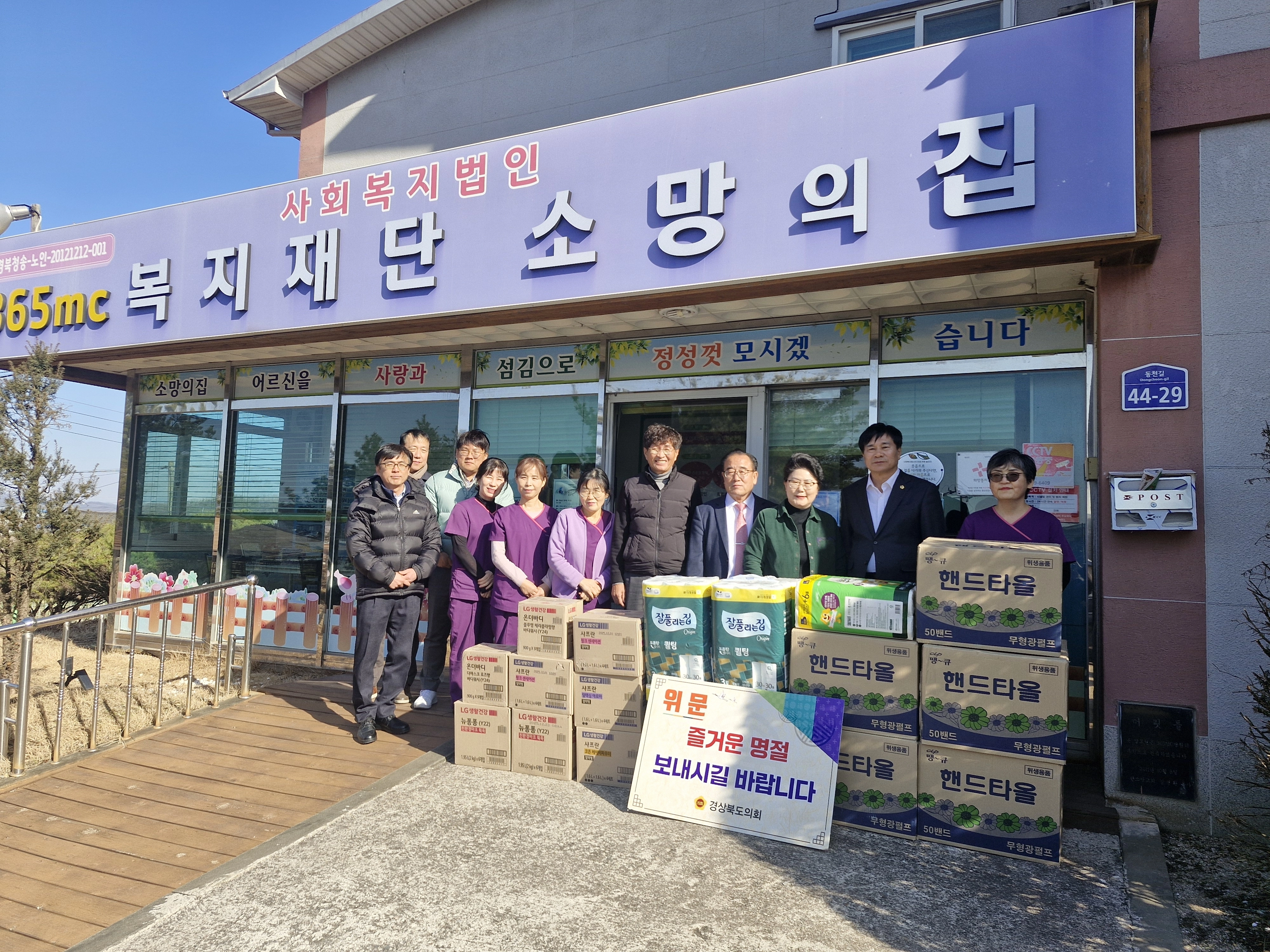 지난 6일은 도의회를 대표해 신효광 농수산위원회 위원장과 임기진 행정보건복지위원회 위원이 청송군 소재 소망의 집과 베데스다를 찾아 시설 관계자들을 격려하고 도의회에서 준비한 위문품을 전달했다.