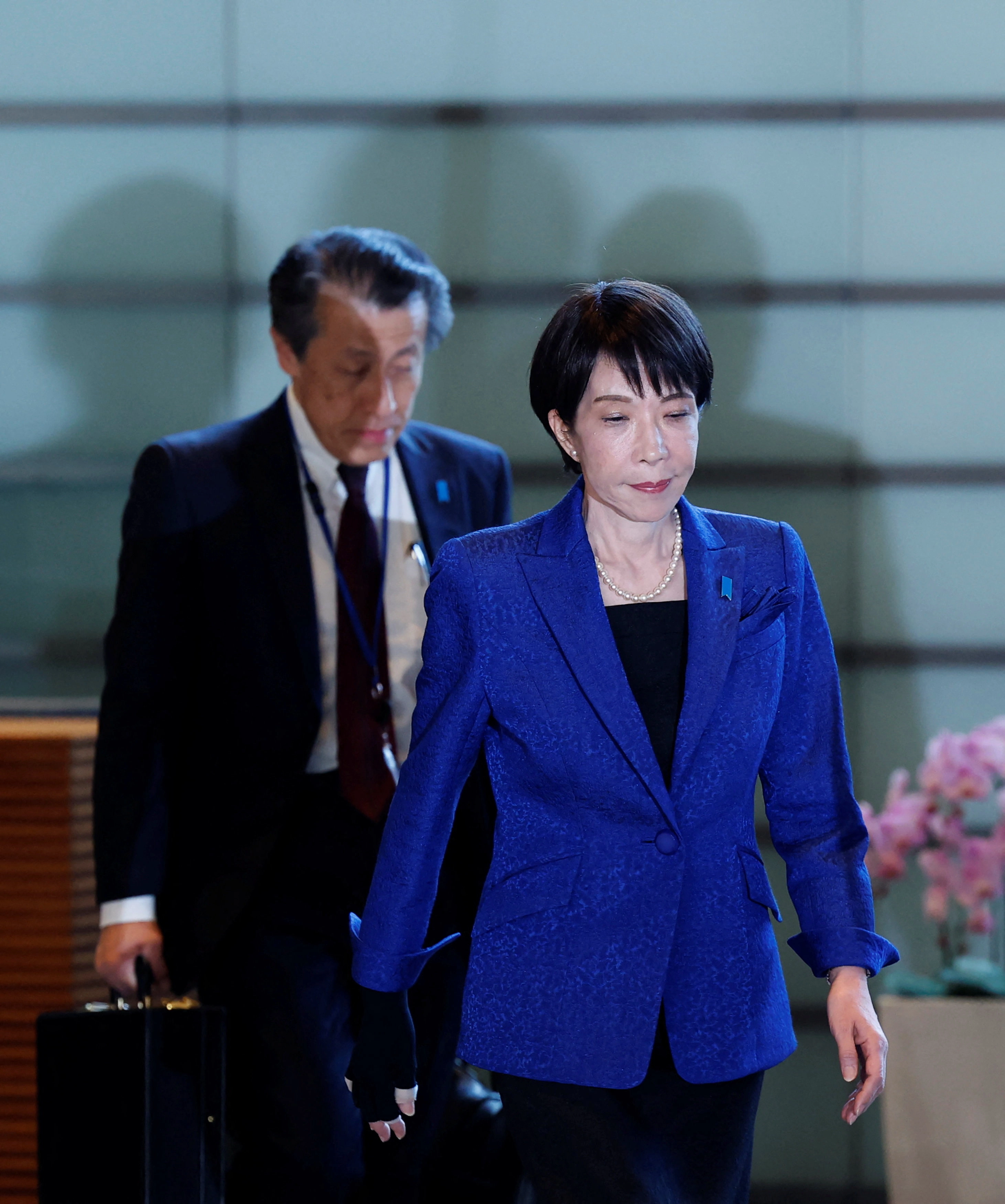 지난 8일 치러진 중의원 선거에서 역사적 대승을 거둔 다카이치 사나에 일본 총리가 9일 도쿄 총리 관저에 도착하고 있다.