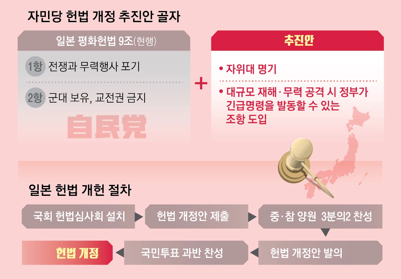 ‘전쟁 포기’ 유지하되 자위대 정식 군대화… 해외 파병 확대 야심