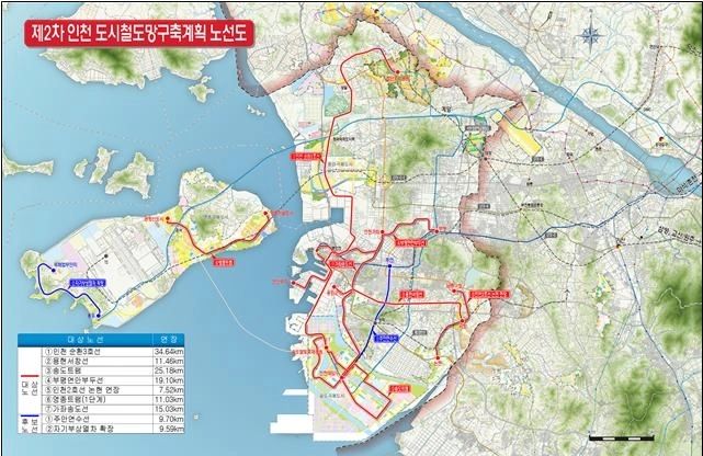 2차 철도망 구축계획은 순환3호선을 비롯해 ▲용현서창선 ▲송도트램 ▲부평연안부두선 ▲인천2호선 논현 연장 ▲영종트램 ▲가좌송도선 등 7개 노선, 총 123.96㎞ 규모로 8조6840억원의 사업비가 투입된다.