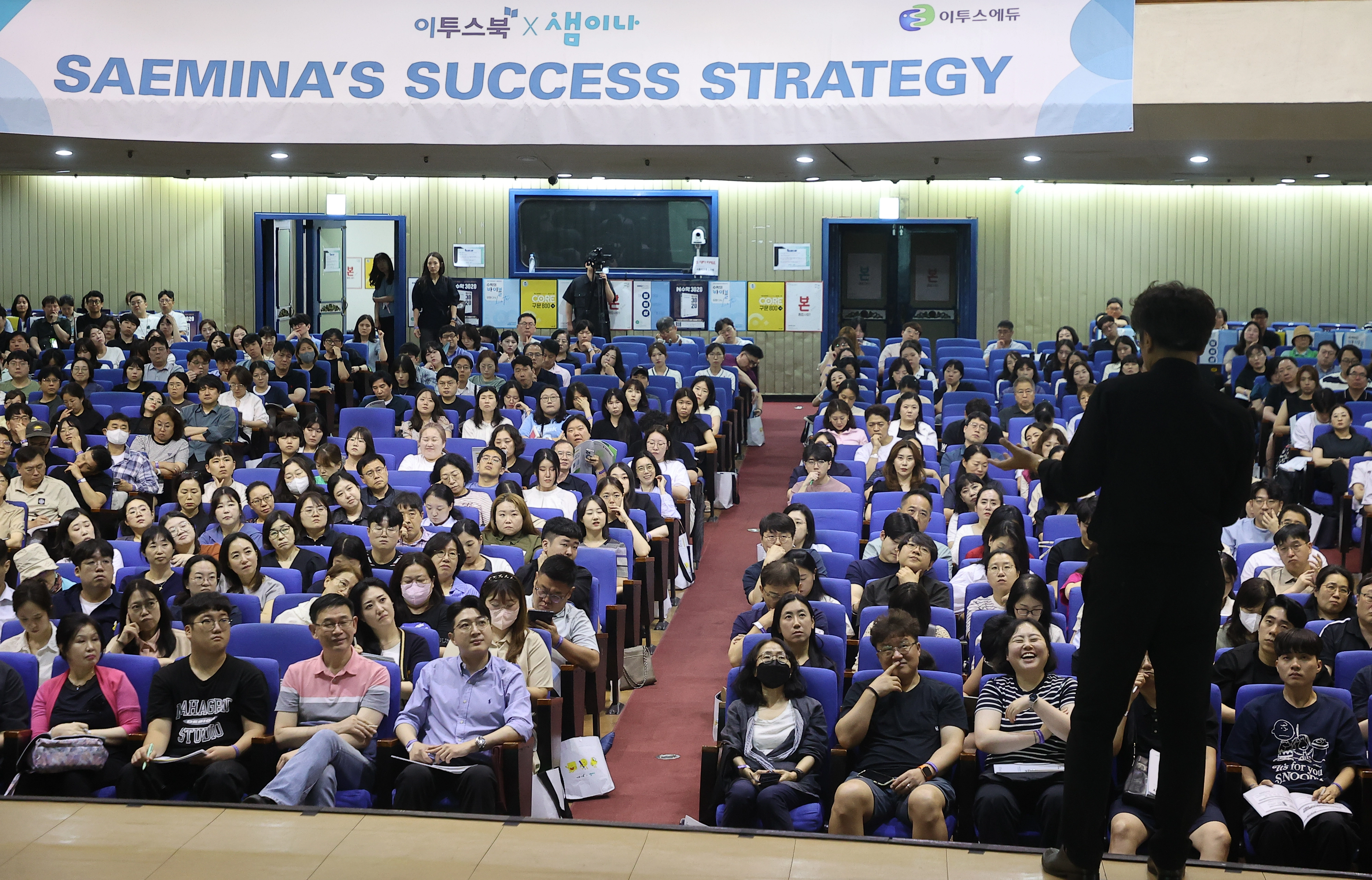 김병진 이투스 교육평가연구소장이 14일 서울 송파구 교통회관에서 이투스 출판브랜드 ‘이투스북’과 교강사 커뮤니티 ‘샘이나’ 주최로 열린 교강사 대상 대학 입시 설명회에서 강연하고 있다. 2025.7.14 연합뉴스