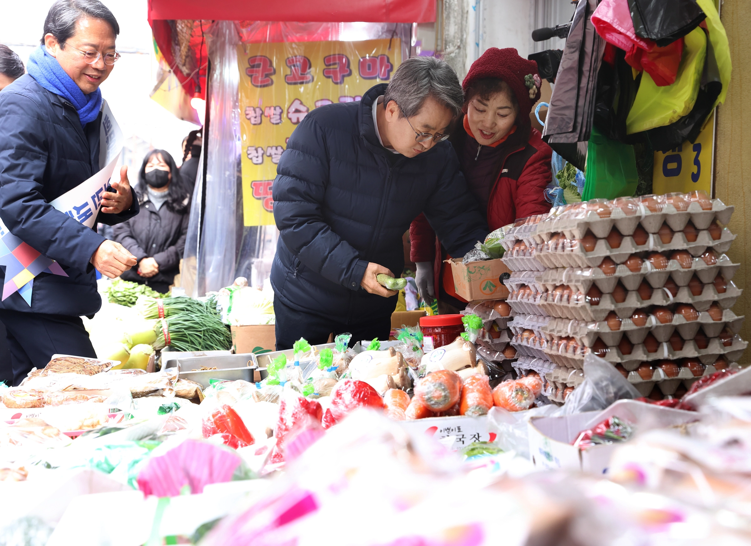 김 지사는 이날 오전 김승원 국회의원(수원시갑)과 함께 수원시 조원동 조원시장에서 가게를 일일이 돌아다니며 필요한 제수용품을 구입했다. 그는 “요즘 장사는 어떠신지”, “빵맛이 유명하다고 들었다. 대목 좀 보셨으면 좋겠다”, “조원시장 김치가 맛있다고 하더라”, “새해 복 많이 받으시고 장사 잘 되세요” 등의 덕담을 건넸다. 이어 조원시장 상인회 회원들과 점심을 함께하며 민생경제 상황을 살폈다.