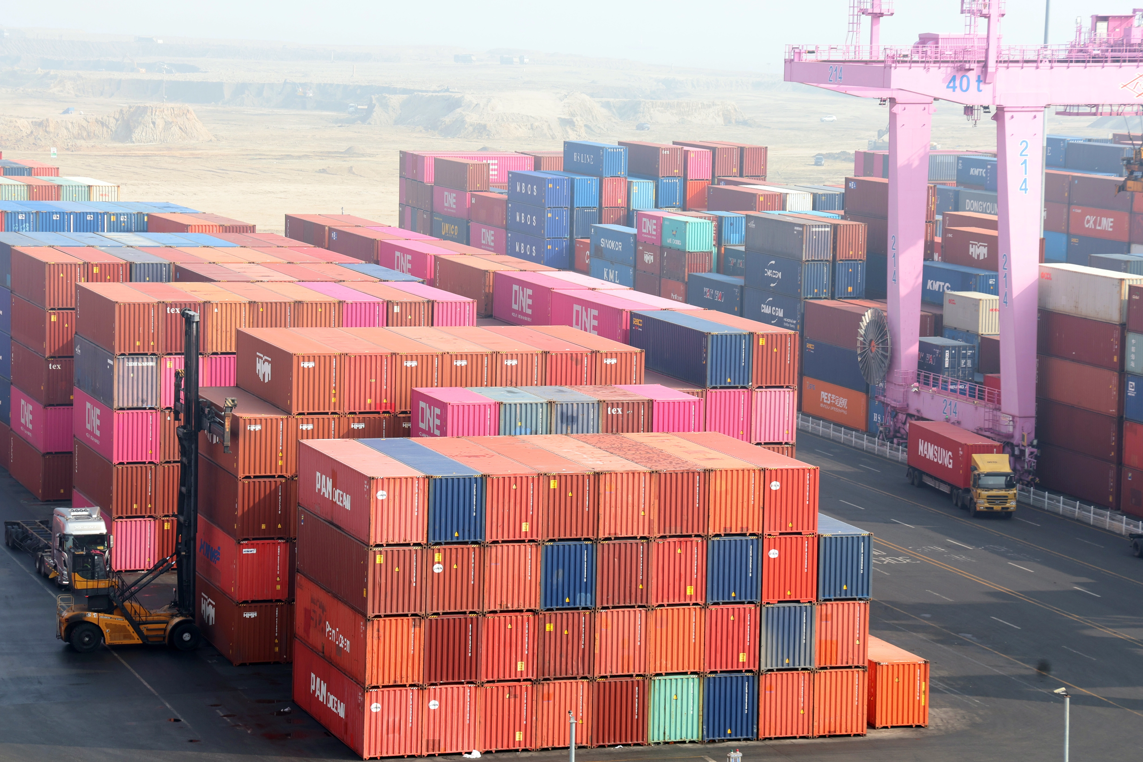 지난 11일 인천신항 컨테이너 터미널에 수출입 컨테이너가 쌓여 있는 모습. 2026.2.11/뉴스1