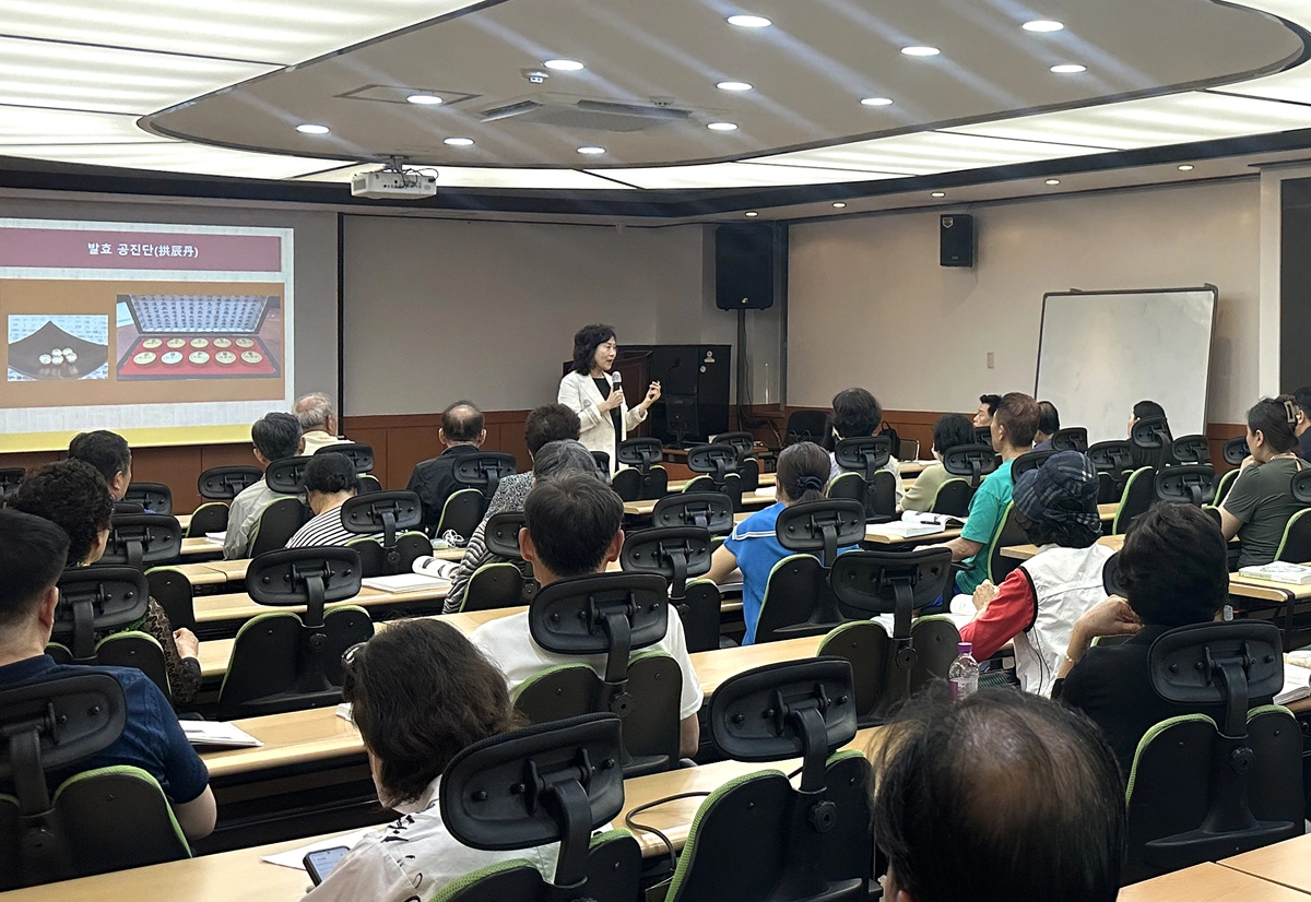 서울 관악구가 지난해 진행한 ‘관악약초학교’에서 주민들이 ‘공진단 만들기’ 수업을 듣고 있다. 관악구 제공
