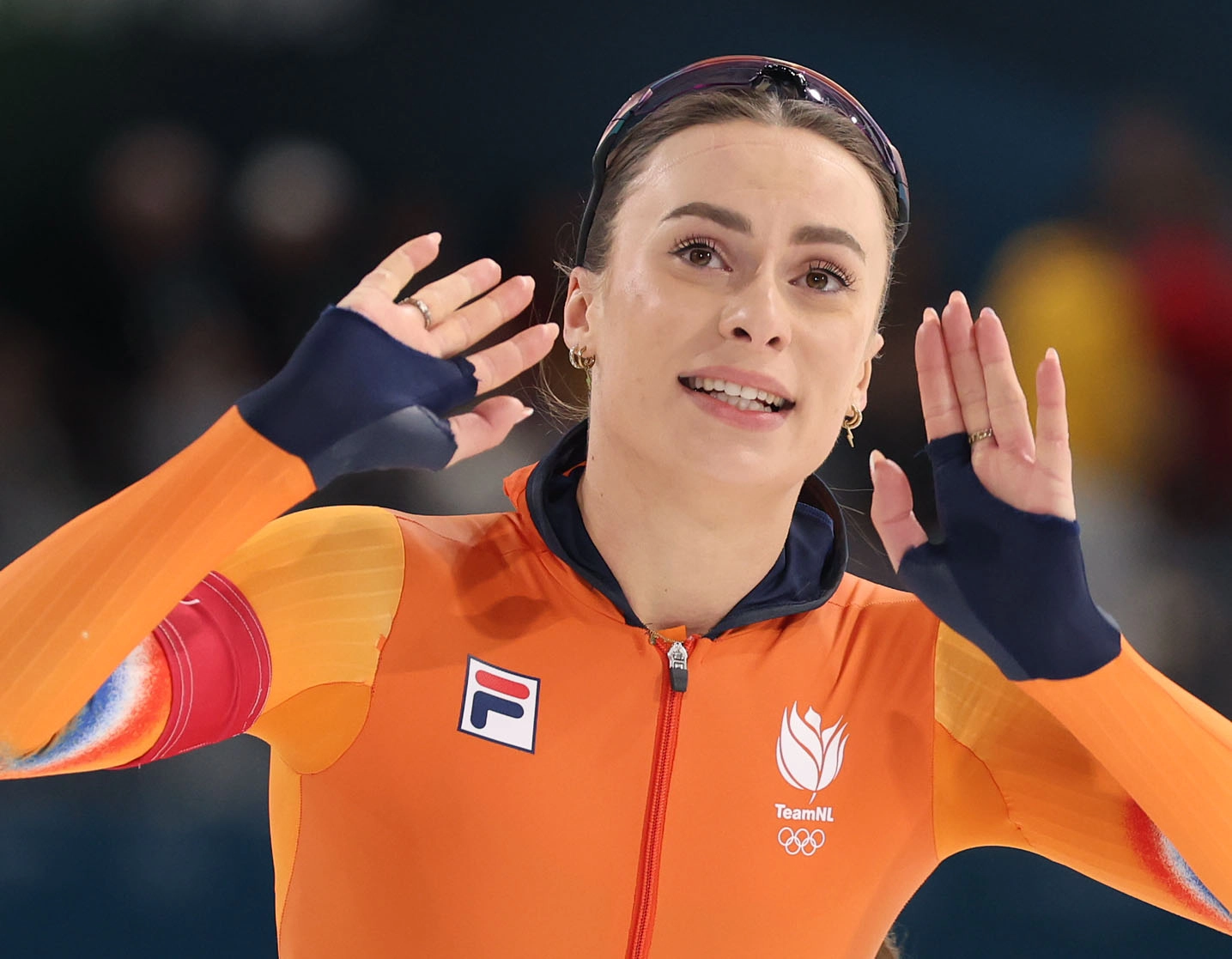 15일(현지시간) 이탈리아 밀라노 스피드스케이팅 스타디움에서 열린 2026 밀라노ㆍ코르티나담페초 동계올림픽 스피드스케이팅 여자 500m에 출전한 네덜란드 펨케 콕이 금메달을 획득한 뒤 인사하고 있다. 밀라노 연합뉴스