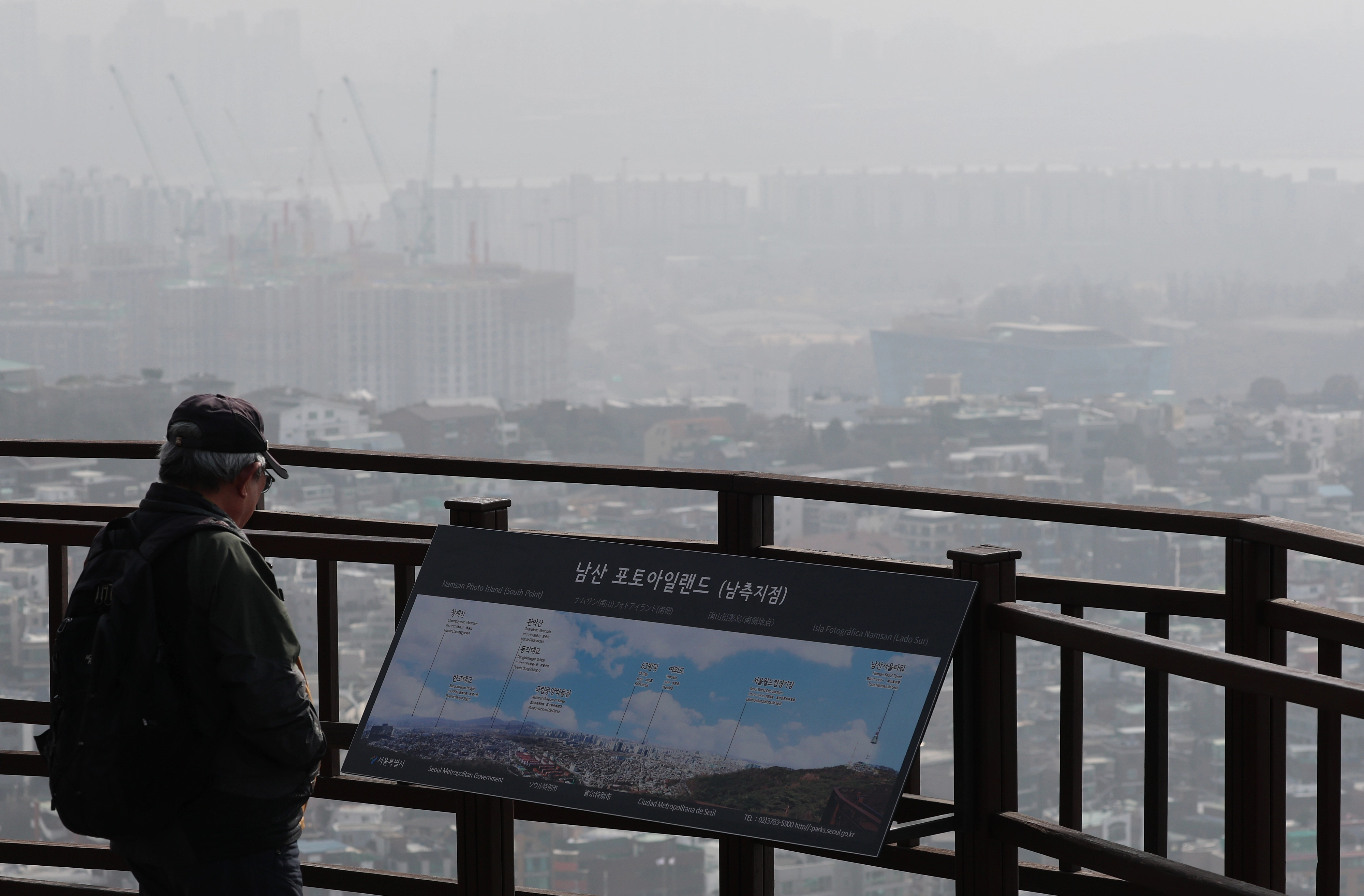 황사의 영향으로 서울을 비롯한 수도권에 올해 첫 미세먼지 경보가 발령된 22일 오후 서울 중구 남산에서 바라본 도심이 희뿌연 모습을 보이고 있다. 뉴스1