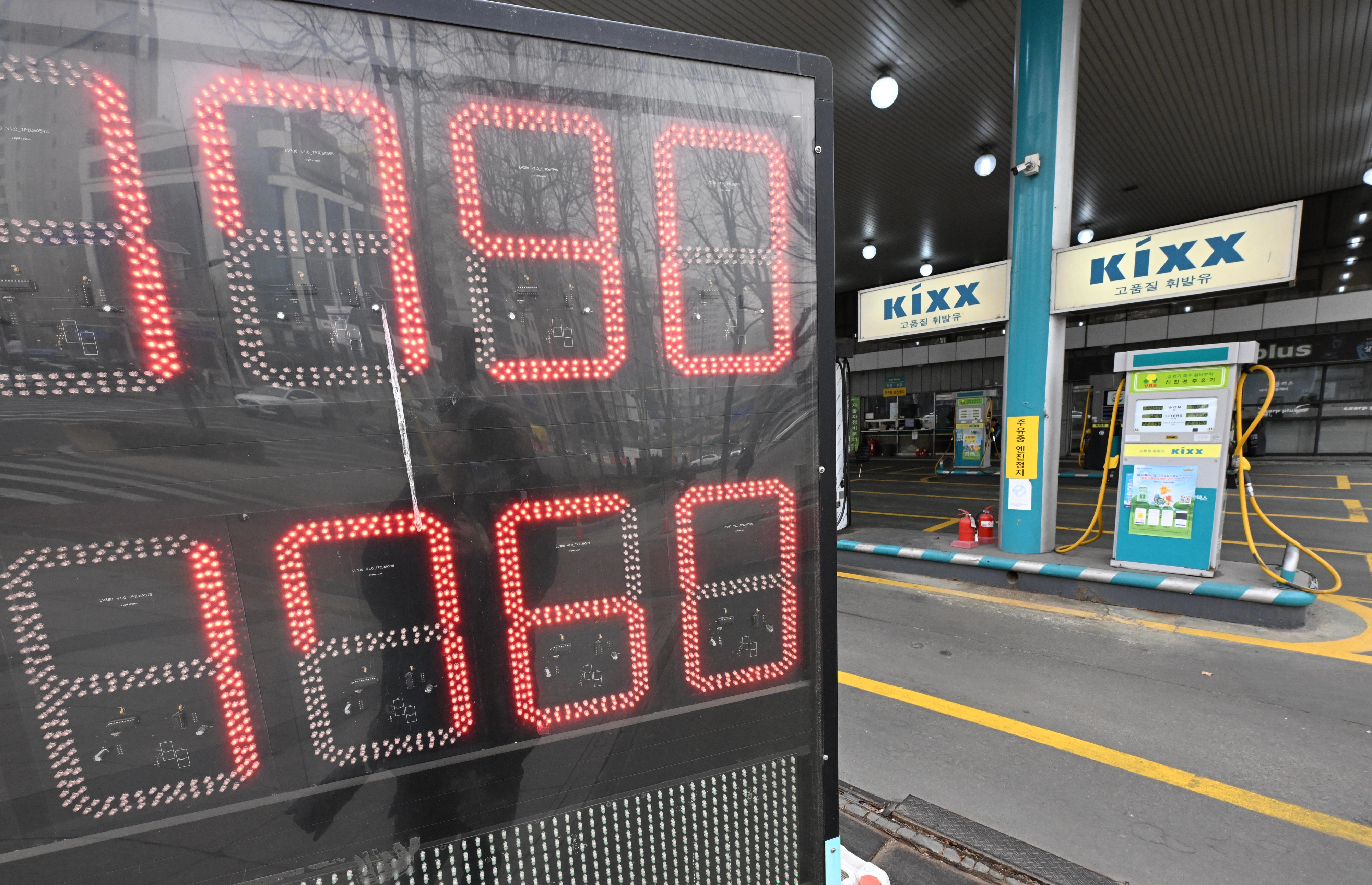 주유소 휘발유와 경유 가격이 11주 만에 상승 전환된 22일 서울 시내 한 주유소에 기름 가격이 표시돼 있다.