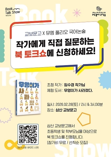 뮤엠교육(대표 이광수)의 국어논술 전문 브랜드 ‘뮤엠 폴리오(MU:M Folio)’가 교보문고에서 임수경 작가와 함께 북토크쇼를 진행한다고 밝혔다.
