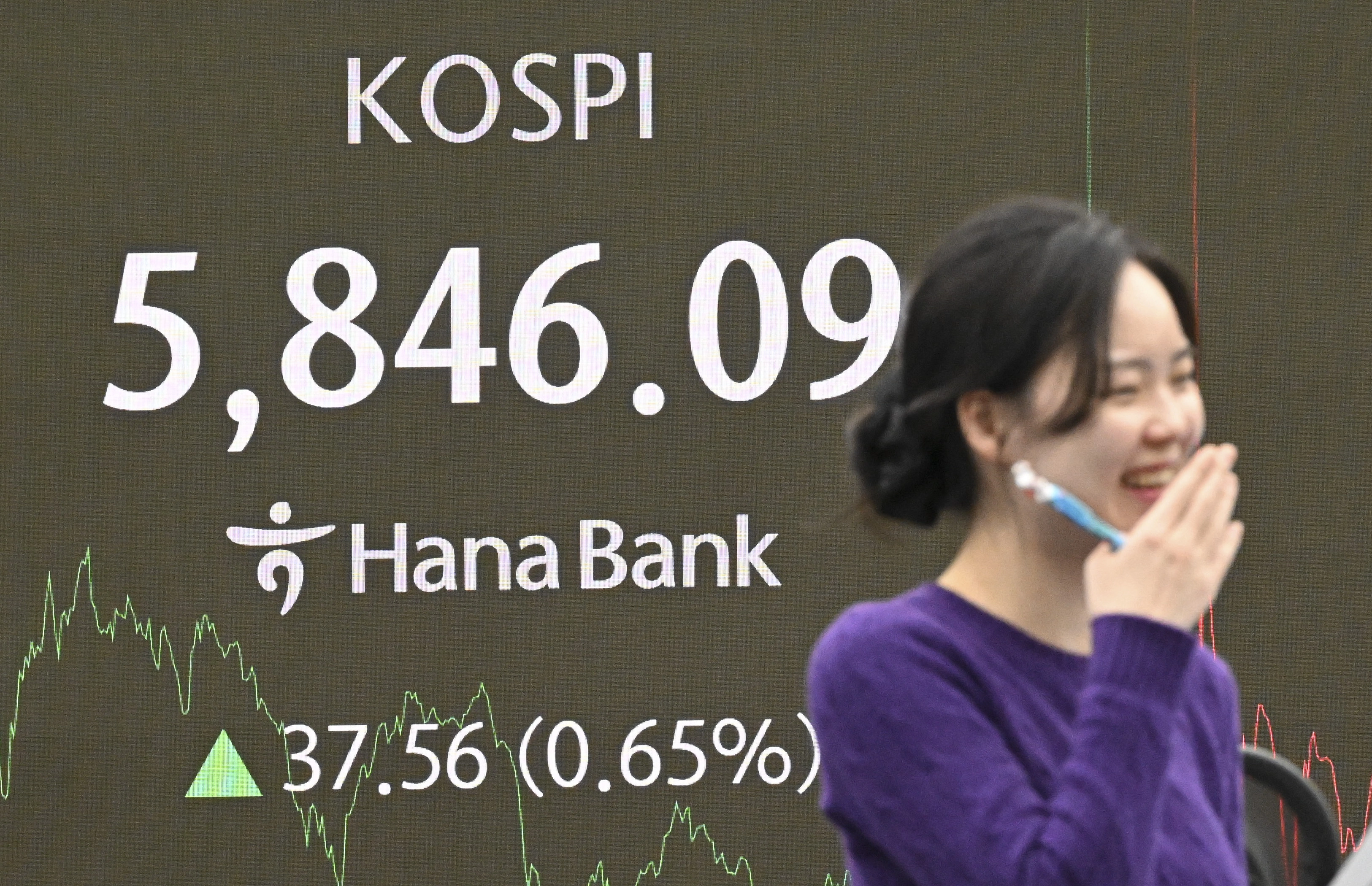 이날 코스피는 한때 5900을 돌파하기도 했으며 전 거래일 대비 37.56포인트(0.65%) 오른 5846.09에 장을 마쳤다. 코스닥은 2.01포인트(0.17%) 내린 1151.99에 장을 마쳤다.