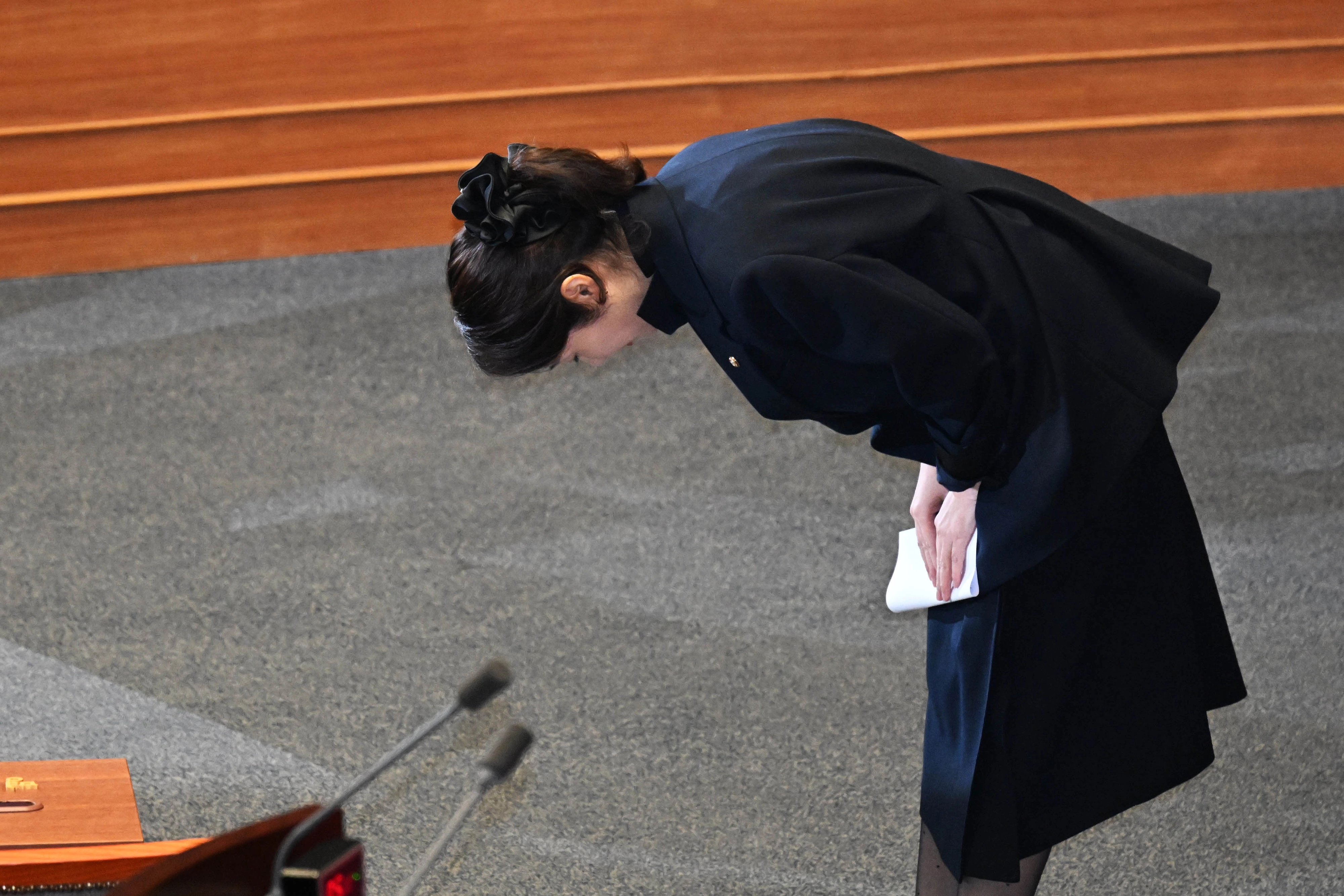 공천헌금 의혹으로 구속영장이 청구된 강선우 무소속 의원이 24일 국회에서 열린 제432회국회(임시회) 8차 본회의에서 신상발언 전 인사하고 있다.