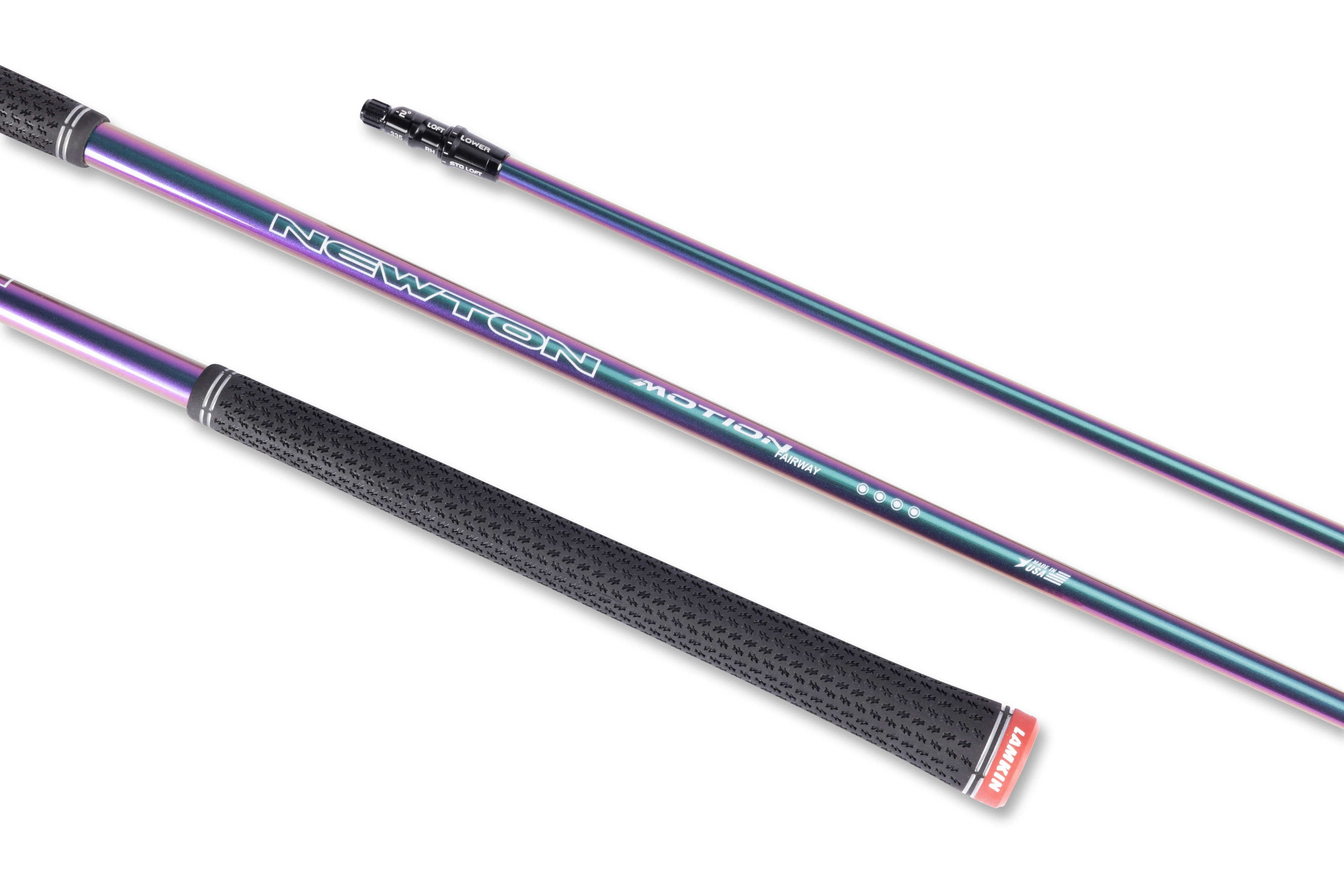 뉴턴 골프의 고성능 샤프트는 에너지 전달 효율을 극대화하는 구조 설계와 샤프트 전 구간의 일관된 휘어짐과 반응을 통해 비거리와 방향 안정성 향상을 추구한다.