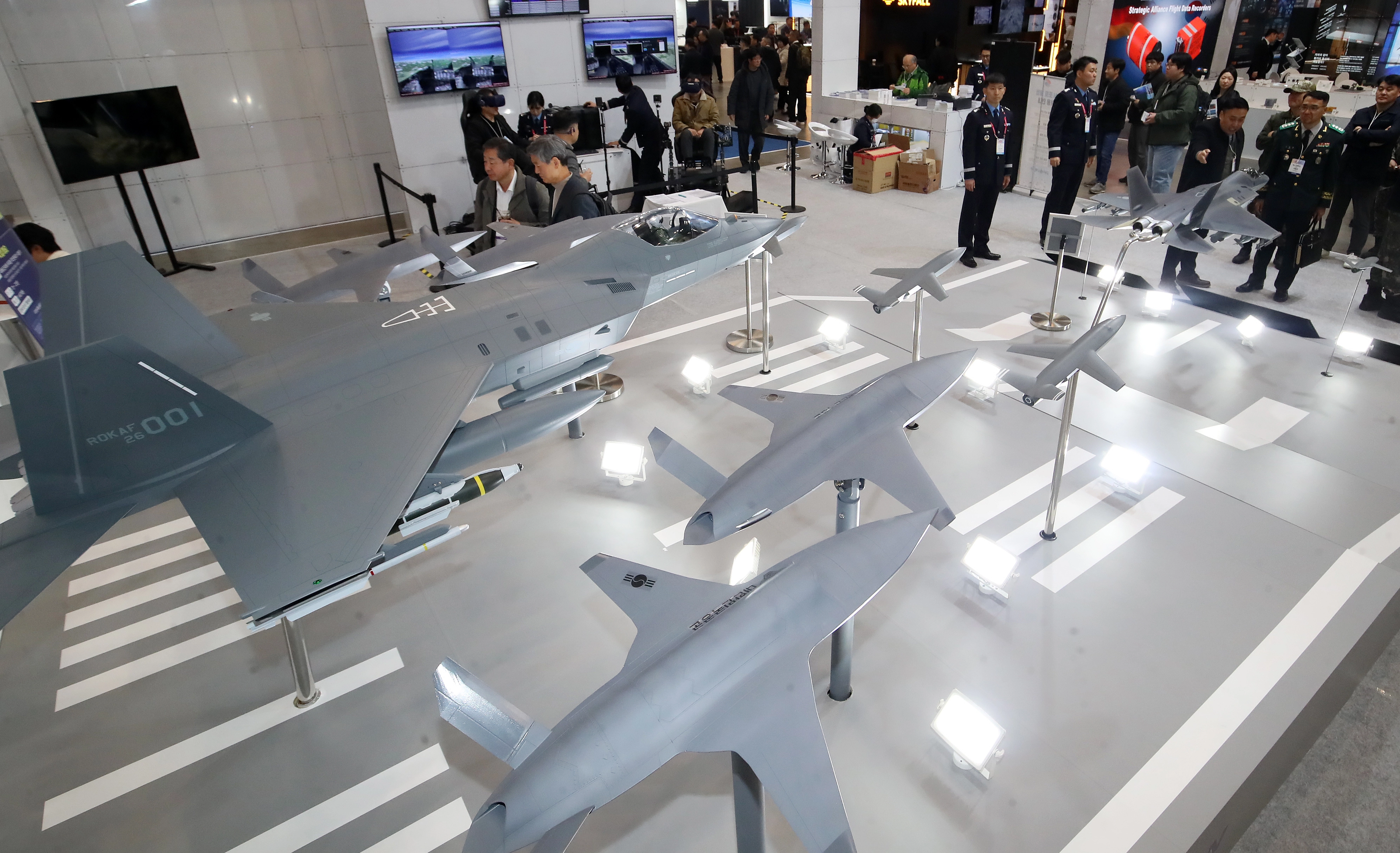 25일 부산 해운대구 벡스코에서 열린 ‘DSK 2026’(드론쇼코리아)의 공군 부스에서 관람객들이 유·무인 복합전투체계 등 다양한 드론을 살펴보고 있다. 부산 뉴스1