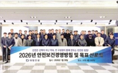 대방건설이 2026년을 맞아 자율 안전문화 정착과 스마트 안전보건관리체계 강화를 골자로 한 새 경영방침을 발표했다. 올해 목표를 ‘5년 연속 중대산업재해 제로(Zero)’로 설정하고, 현장이 스스로 위험요인을 개선하는 실질적 작동에 중점을 둔다는 계획이다.
