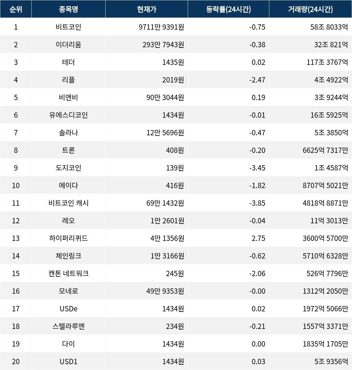 전반적인 시장 흐름은 비트코인과 이더리움의 반등 시도에도 불구하고 다수의 종목이 하락세를 면치 못하고 있다. 투자 시 변동성에 주의할 필요가 있다.