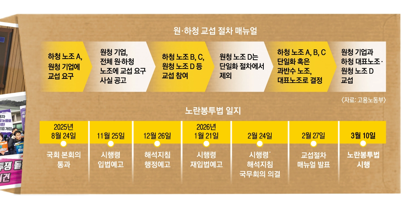 원·하청 교섭 창구 이원화원청 노조, 단일화 대상 아님 명시