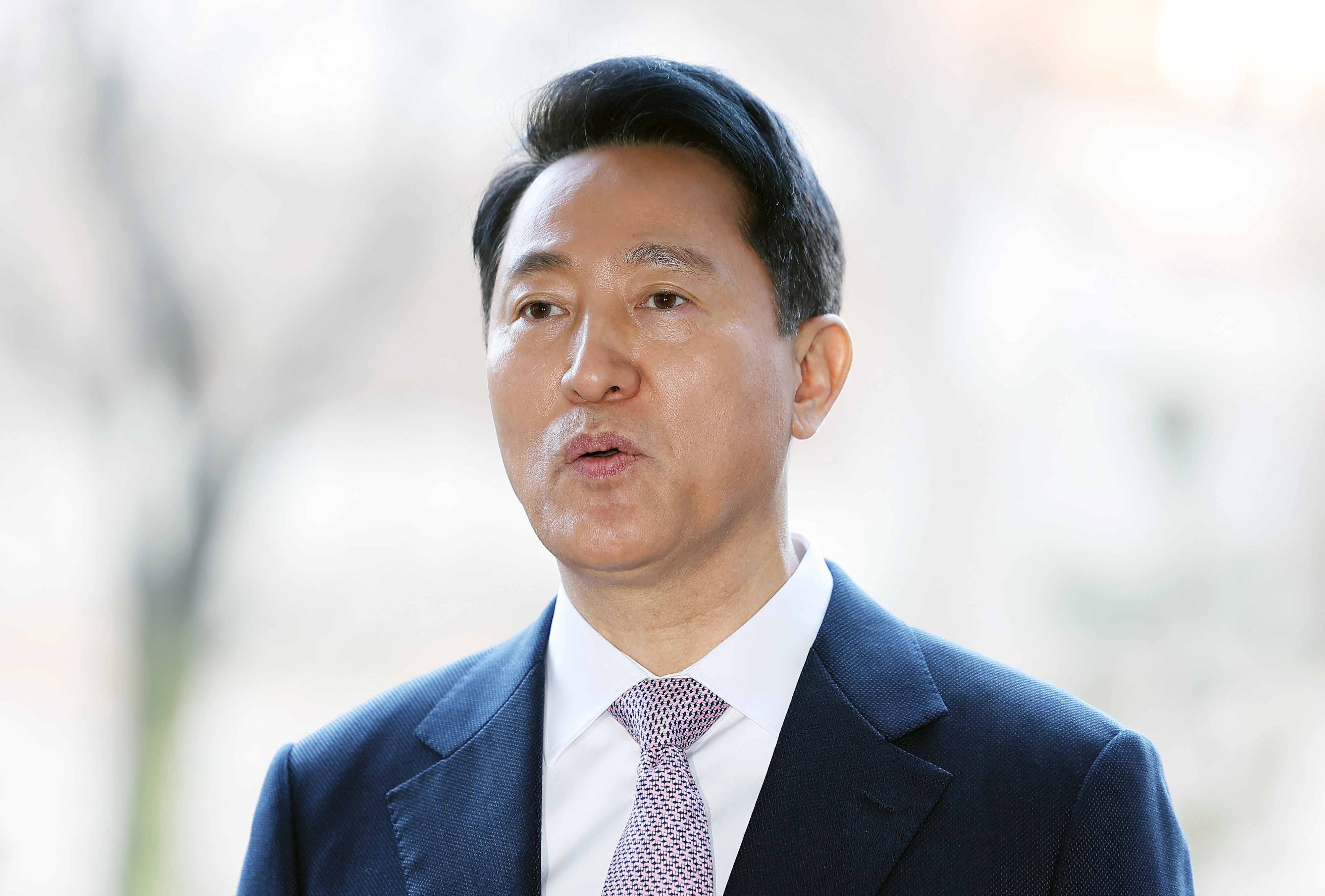법원 출석 전 입장 밝히는 오세훈 서울시장