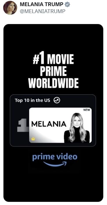 도널드 트럼프 미 대통령의 부인 멜라니아 여사의 삶을 담은 다큐멘터리 영화가 아마존 프라임에 공개된 지 하루 만에 미국 스트리밍 1위에 오르며 화제를 모으고 있다. 전문 평론가들의 혹평과 달리 일반 관객들은 압도적인 지지를 보내며 엇갈린 반응을 나타냈다.