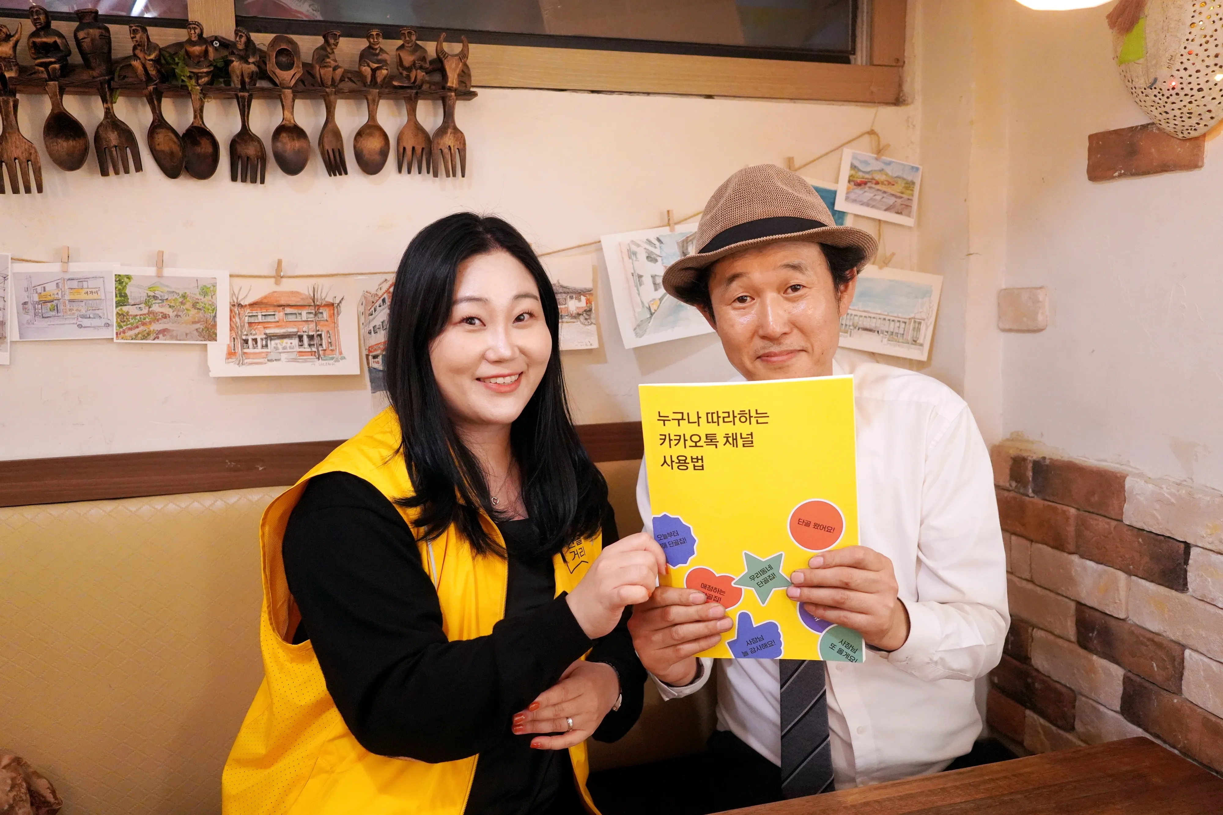 2주 전부터 카카오에서 직원과 전문 튜터들이 찾아와 카카오 서비스 활용법을 알려주기 시작했다. 톡 채널을 개설하는 것에서부터 가게에서 하는 행사나 이벤트를 소개하는 방법, 할인 쿠폰을 만드는 법 등 배울 것이 많았지만 그리 힘들지는 않단다.