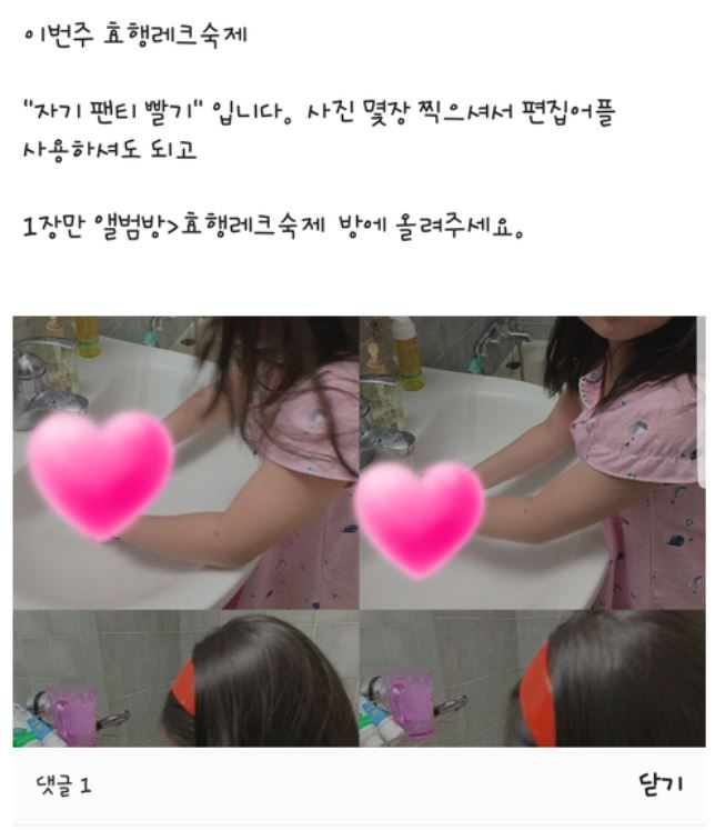앞서 한 학부모가 포털사이트에 올린 글에 따르면 A씨는 주말 효행 숙제로 아이들에게 ‘자기 팬티 빨기’를 내주며 사진을 찍어 올리게 했고, A씨는 ‘이쁜(예쁜) 속옷, 부끄부끄’, ‘분홍색 속옷. 이뻐여(예뻐요)’ 등의 댓글을 달았다. 울산교육청은 A씨의 행동을 학부모가 성희롱으로 판단하는 만큼 경찰에 신고했다.