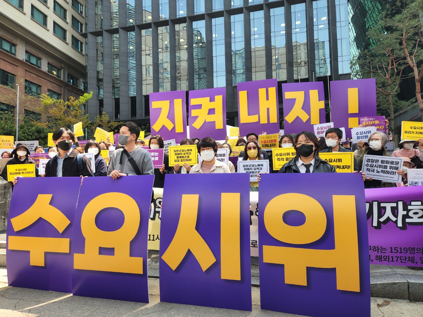 회견 직후 율곡로의 2개 차선 30m 가량에 걸쳐 제1540회 수요시위가 열렸다. 인도에서 보수단체 집회가 계속돼 경찰이 두 단체 사이에 경찰 버스 3대와 공무수행차를 동원해 차벽을 만들기도 했다.