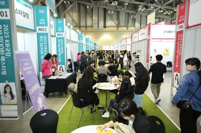 지난해 10월 18일 부산 벡스코에서 개최한 ‘KB굿잡 취업박람회’가 취업준비생 등 참석자로 붐비고 있다. 서울신문DB
