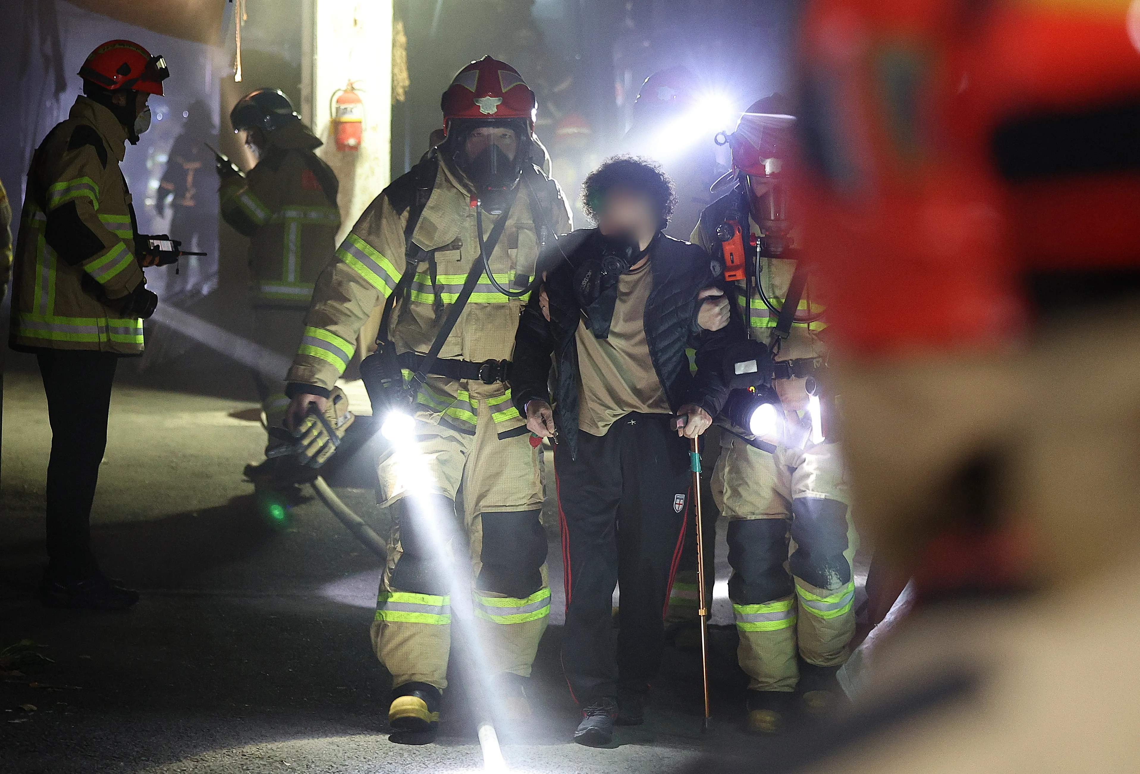 대구 대명시장 화재, 시민 구조하는 소방대원  5일 오후 9시 8분쯤 대구 남구 대명시장에서 불이 난 가운데 소방대원이 시민을 구조하고 있다. 연합뉴스