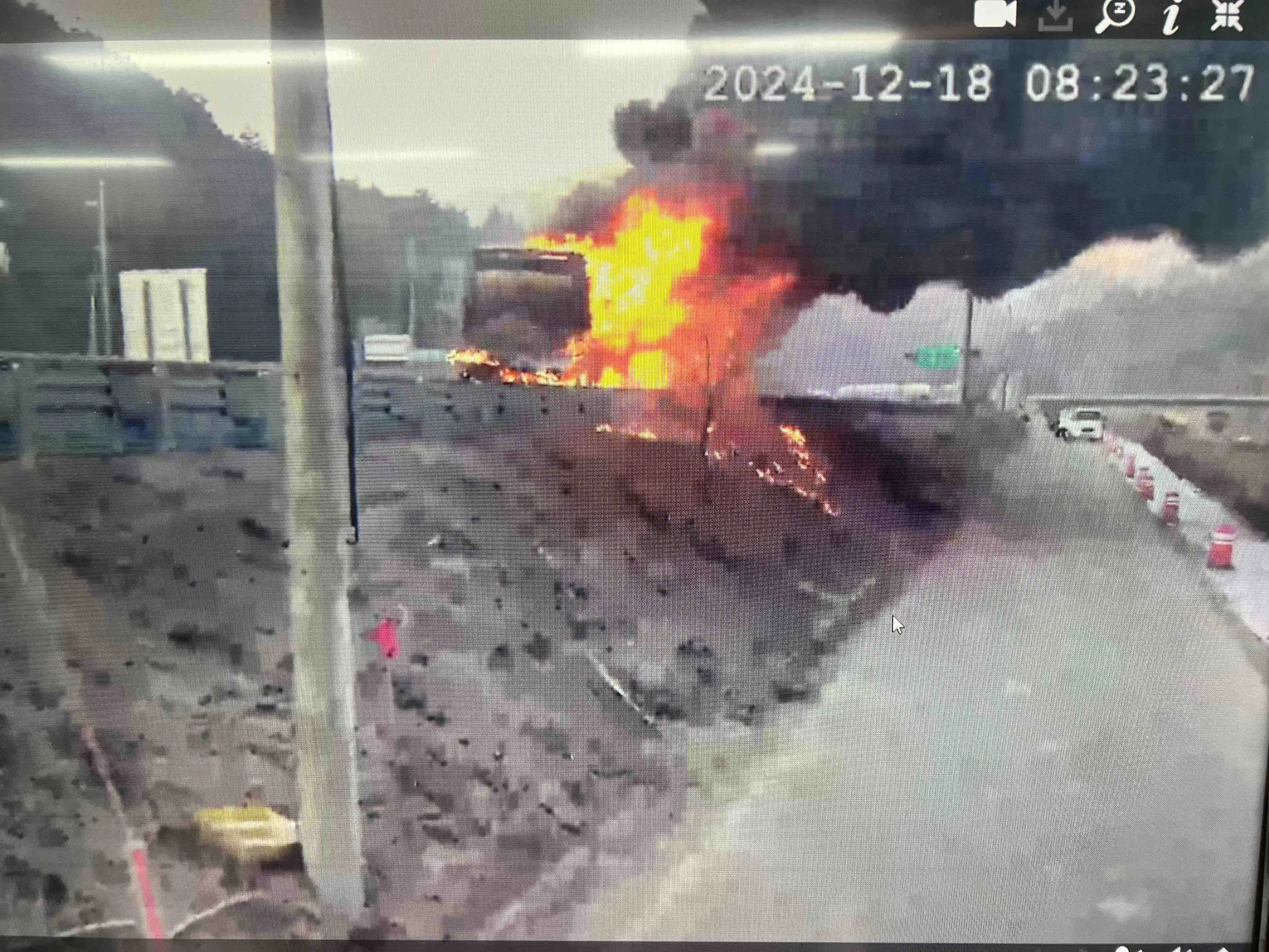 18일 오전 8시 7분쯤 강원 평창 용평면 용전리 영동고속도로 인천방향 평창IC 인근에서 승객 21명을 태운 관광버스에 불이 났다.