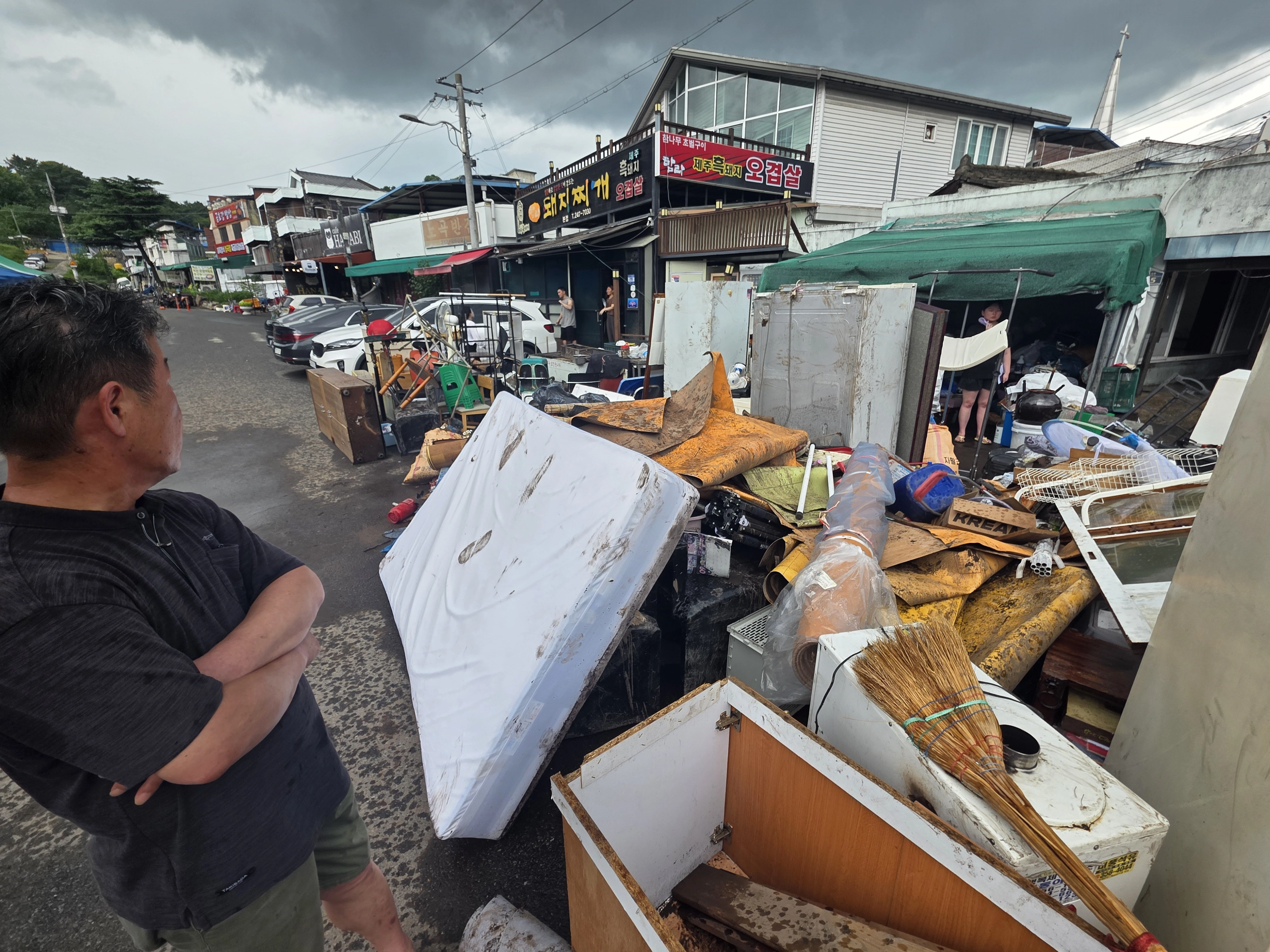 물에 젖은 가구와 가전제품을 바라보던 주민들은 고쳐 쓸 만한 물건은 없는지 살피느라 여념이 없었다. 침수된 차를 수건으로 닦던 한 주민은 한숨을 연거푸 내쉬었다.