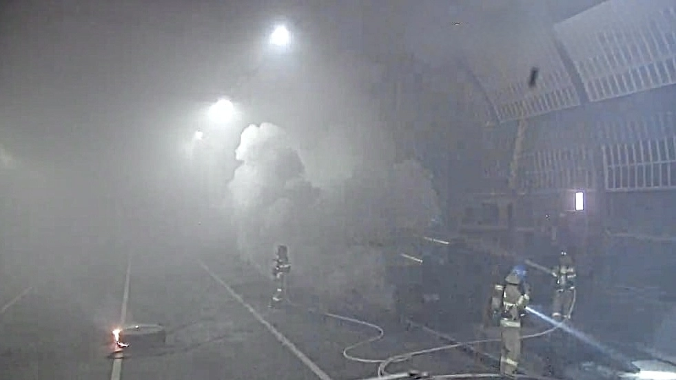 불이 나자 트럭 운전자는 스스로 대피해 인명 피해는 없었으며, 화재는 터널 구조물로 번지지 않았다.