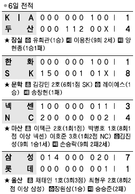 최근 3연패에 허덕이던 삼성은 울산 문수구장에서 롯데를 7-1로 꺾고 오랜만에 승리를 맛봤다. 두산도 잠실에서 KIA를 4-1로 꺾고 3연패를 끊었다.