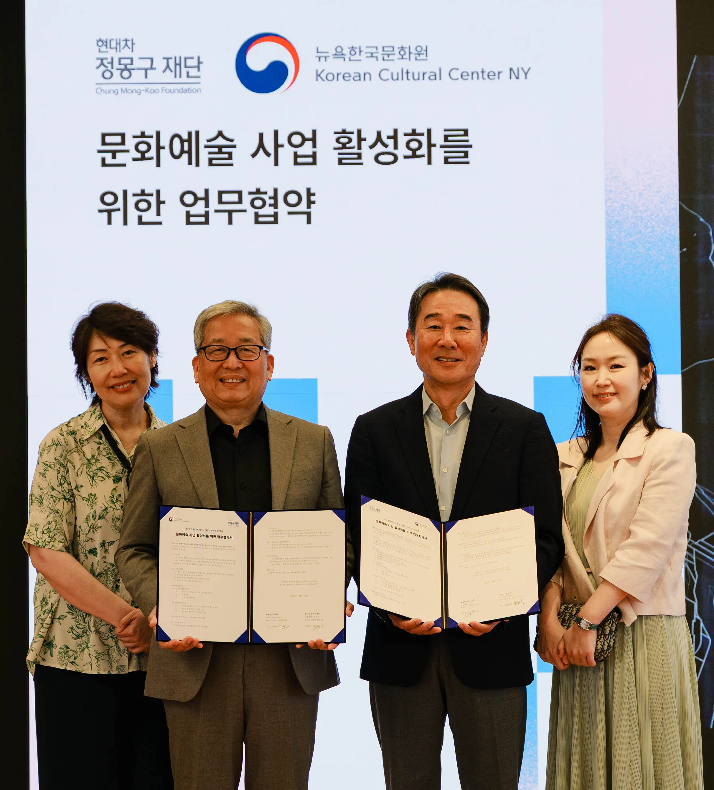 현대자동차 정몽구재단은 지난 27일(현지시간) 미국 뉴욕한국문화원과 한국 문화예술 콘텐츠의 글로벌 무대 확산뿐 아니라 차세대 문화예술 인재의 미국 진출을 지원하는 업무협약(MOU)을 맺었다고 30일 밝혔다.
