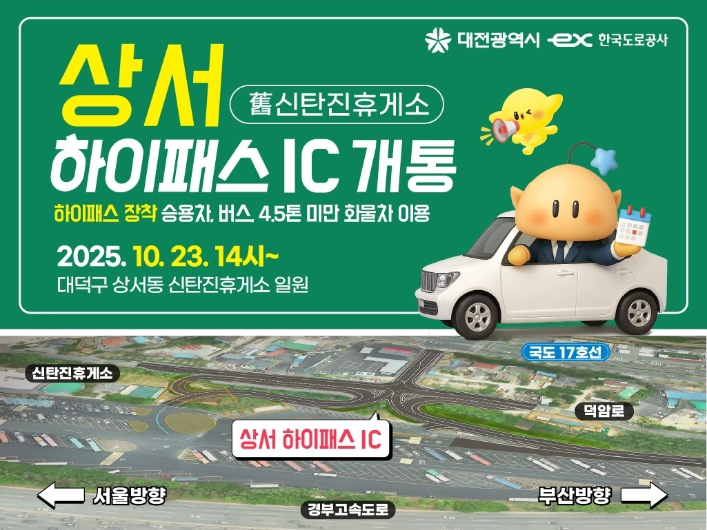 상서IC는 시와 한국도로공사가 신탄진IC 교통량 분산을 위한 협약을 맺고 지난 2023년 11월 착공했다. 총사업비(약 62억원)는 양 기관이 절반씩 부담했다. 상서IC 개통으로 고속도로 진출입 시간 단축과 신탄진IC에 집중되던 교통량 분산으로 지역 내 정체 구간 완화 효과가 기대된다. 시는 특히 산업단지와 물류 시설이 밀집한 북부지역을 오가는 물류 차량의 이동 효율성이 높아져 기업의 경쟁력 강화에 긍정적인 영향을 줄 것이라고 덧붙였다.