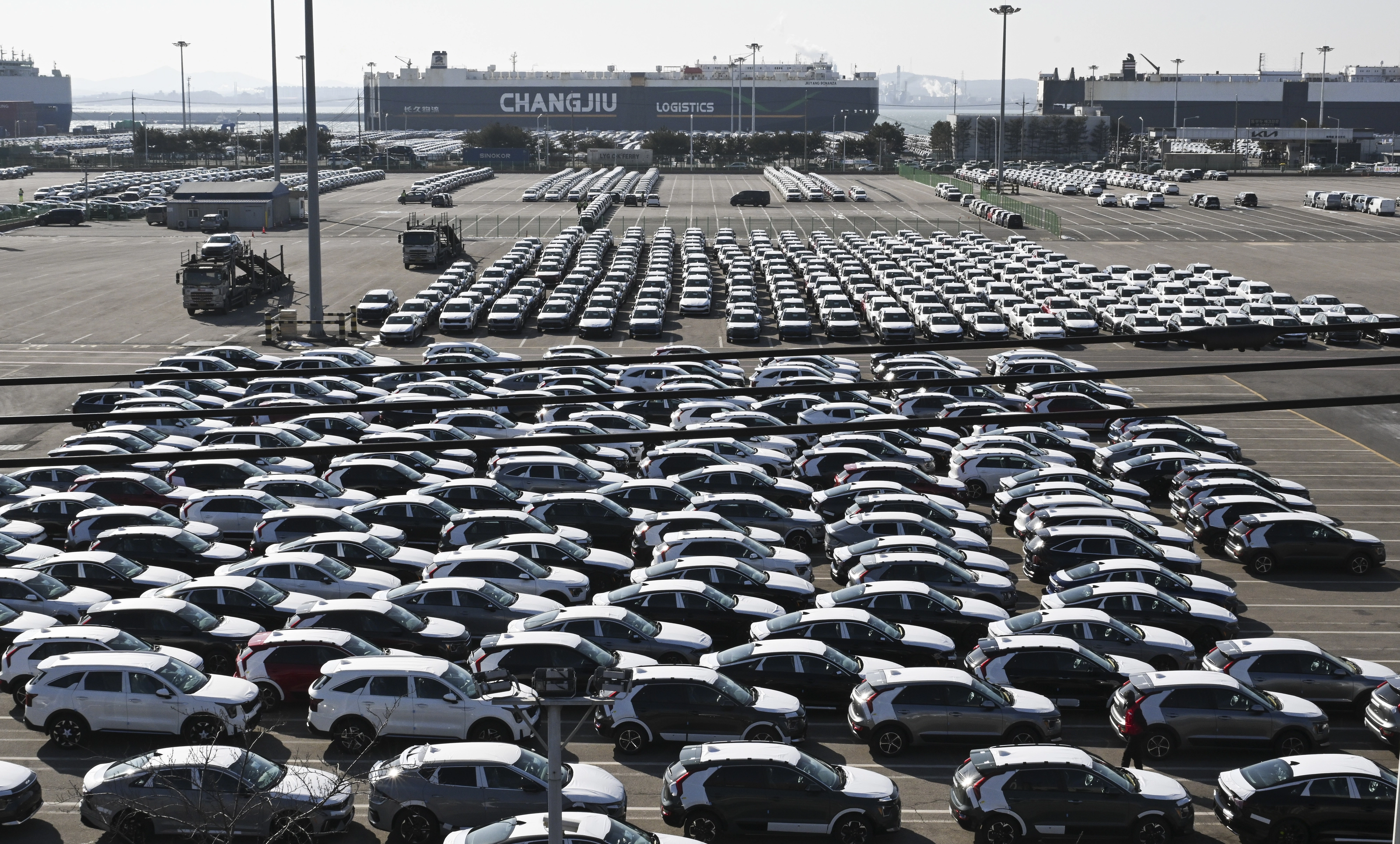 수출 기다리는 자동차  도널드 트럼프 미국 대통령이 26일(현지시간) 한국 국회가 무역 협정을 비준하지 않고 있다며 모든 상호 관세를 15%에서 25%로 인상한다고 밝힌 가운데 수출용 차들이 27일 경기 평택시 평택항에 주차돼 있다.