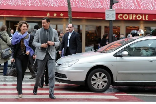 바샤르 알아사드 시리아 대통령과 그의 부인 아스마가 2010년 12월 9일 이틀간의 프랑스 공식 방문 중 파리에서 시리아 공동체를 위한 연설을 하기 위해 도착하고 있다. 파리 AFP 연합뉴스