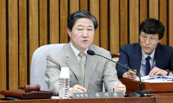 사법개혁특위 주재하는 유기준 위원장  5일 오전 국회에서 열린 사법개혁특별위원회 전체회의에서 유기준 위원장이 발언하고  있다.  2019.8.5 <br>연합뉴스